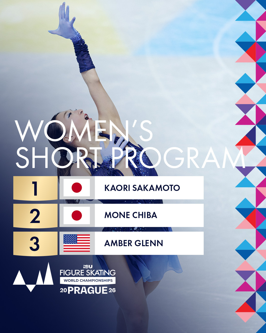 2026花滑世锦赛女单短节目战报✨冬奥会 2026 ISU布拉格花样滑冰世锦赛女单短节目落幕,赛场迎来日本双姝领跑时刻🔥🇯🇵 坂本花织(Kaori Sakamoto)暂列榜首,这也是她职业生涯最后一届世锦赛,谢幕之战备受瞩目🇯🇵 千叶百音(Mone Chiba)紧随其后,日本选手包揽前二,展现强大统治力🇺🇸 安伯·格伦(Amber Glenn)稳坐第三,成为北美区代表此刻皆不凡