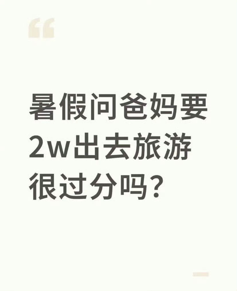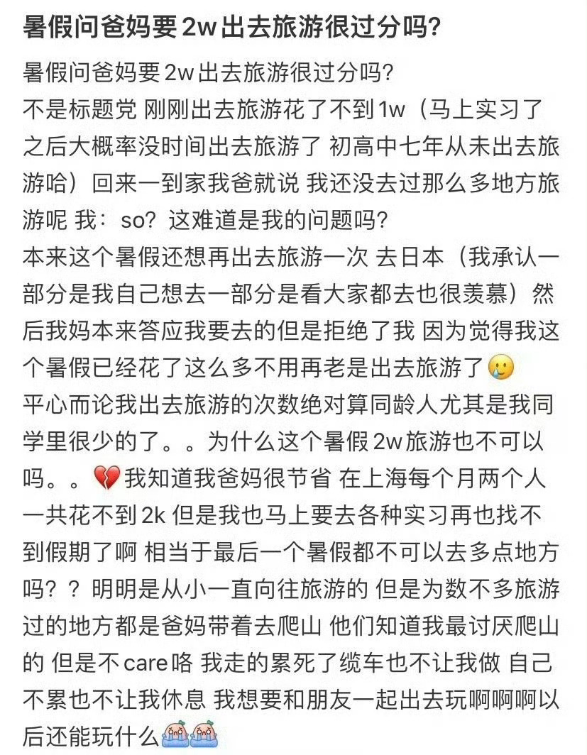 暑假问爸妈要2w出去旅游很过分吗?