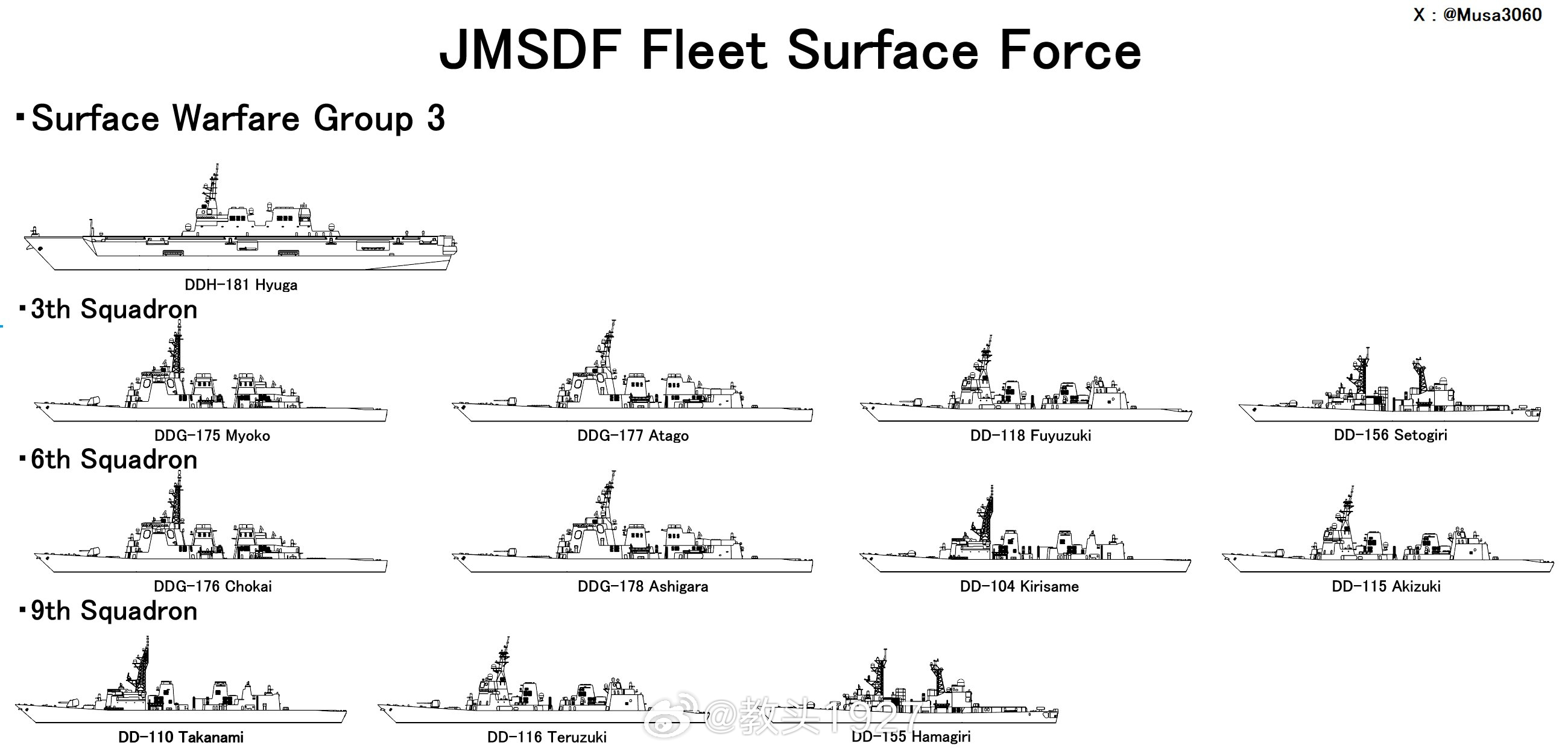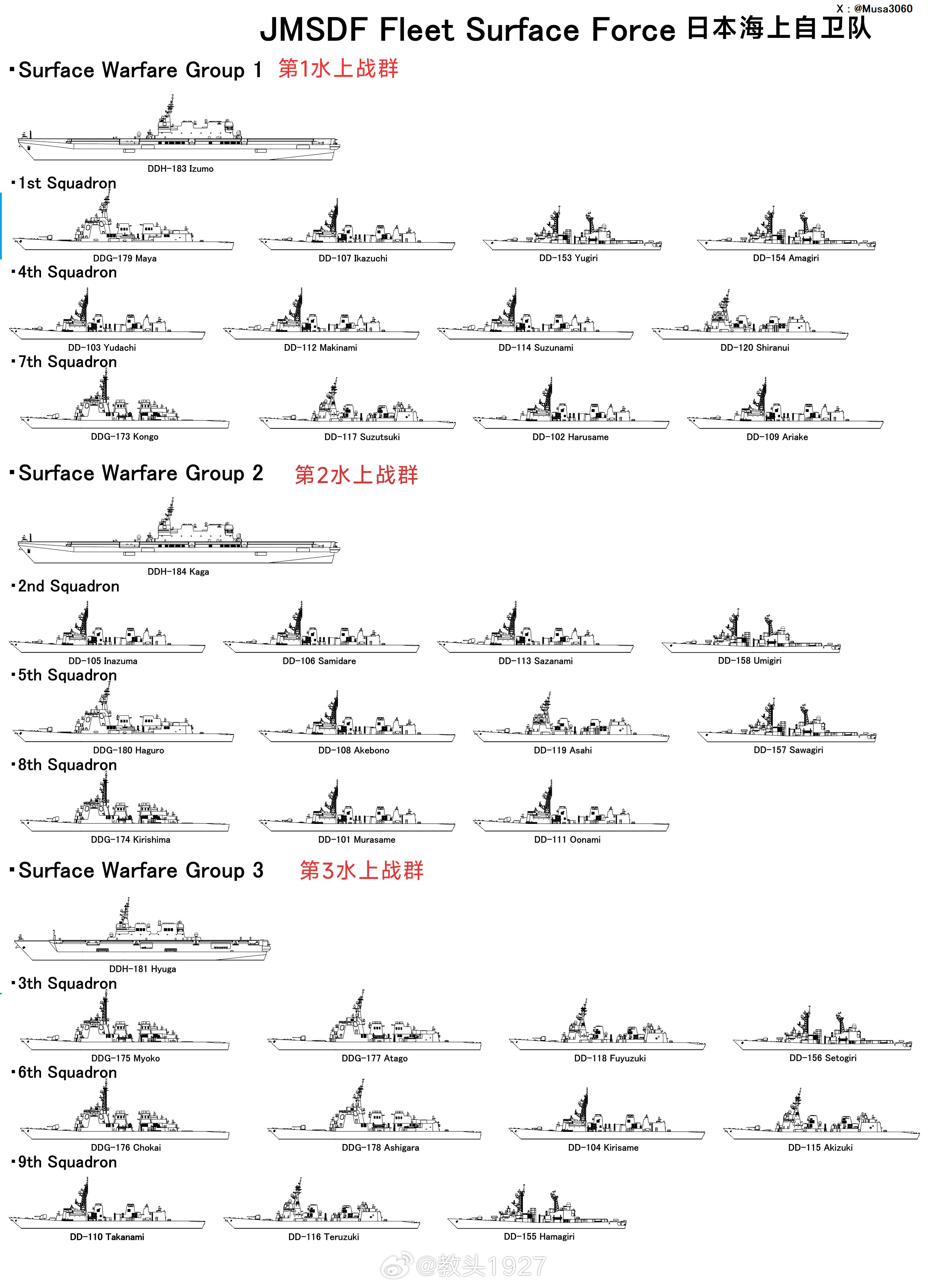 日本海上自卫队改编后的三大水上战群编制来自 𝕏中外舰闻