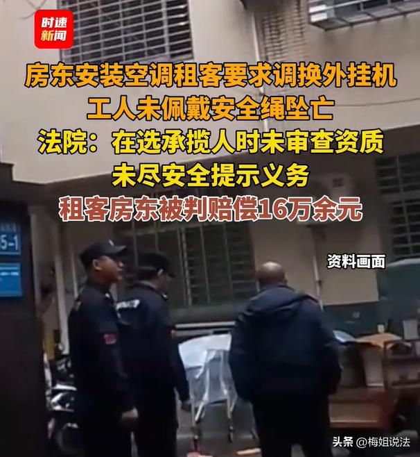 内蒙古,房东准备给自家房子安装空调,安装妥善之后租客提出要求,希望调换外挂机,于是就拨打了售后电话,提出了移机诉求。安排师傅上门时,工人师傅没有佩戴安全绳,一个不小心就从6楼掉下去了。这下,房东、租客都悲催了,被工人的家属给上诉了,要求他们赔偿经济损失。 时速新闻3月24日报道了这则新闻。 空调承业者,有资质、有证件的前提下,应该自己保障安全,出事了,应该找业主索赔吗? 我们来看下这个案件。 随着天气的暖和,家家户户对于空调的需求逐渐增大。 一位房东赵先生,应要求安装空调,空调安装好了之后,租客郝某又提出诉求,他希望调换一下空调外挂机,因为机器可能有些故障。 在拨打了售后电话之后,也安排了一位维修工人徐某过来。 徐某上门后,口头上明确表示,自己是专业的工人师傅,上门来调整空调外机的。 师傅上门后,房东赵先生跟租客郝某,两个人都没有审查徐某的相关资质和证件,直接就准备开展移机工作。 而这个徐某,也是艺高人胆大,因为当时楼层是在6楼,他直接就“真空上阵”,丝毫没有上任何安全装备。 也就是说,徐某也没有佩戴安全帽、也没有系上安全绳,直接就准备跨过窗台,操作机器。 一旁的赵先生跟郝某,两个人也丝毫没有进行劝阻,眼睁睁的看着徐某,直接就单枪匹马的开始工作。 没多久,悲剧就发生了。 当时徐某正站在外墙某个落脚点工作,突然一个不留神,脚底一滑,徐某直接就从6楼掉下去了。 “轰隆”一声,嘈杂声巨响,这可把屋内的赵先生跟郝某,都吓了一大跳。 从窗外望下去,这才意识到,出大事了。 二人立刻就拨打了求助电话,并且也立刻报了警。非常可惜的是,掉下去的徐某,当场就失去了呼吸。 事发之后,徐某的家属则准备追责,把房东跟租客两个人,都给上诉了。 家属认为,徐某就是给房东家里安装空调的,他必须得承担责任。 很多网友认为,作为空调安装师傅,是专业从业人员,他们自己应该对行业操作规则了然于心。既然是安装空调,安装规定,他们就必须要佩戴专业的防护设备。 难不成,安装师傅的安全,还非要跟房东捆绑在一起吗? 这个的确有道理,但是法律却并非如此规定,因为作为房东跟租客,都需要恪尽安全防护以及提醒义务。 所以,我们来看看相关部门是怎么判定的吧。 房东赵先生跟租客郝某,跟安装师傅徐某形成了承揽关系,两个人作为定作人,在选择承揽人的时候,需要审核对方的资质,也需要尽到安全提示义务。 但是赵先生跟郝某,都没有尽到安全职责,并且也没有审核工人的资质,因此也需要承担部分的责任。 当然,徐某作为民事行为人,需要对自己的悲剧承担主要责任。 最后判定下来了,房东赵先生跟租客郝某,需要共同承担15%的责任,依法赔偿徐某家属165400元。 根据《民典法》第1193条规定,承揽人在完成工作过程中造成自身损害的,定作人不需要承担侵权责任。 但是如果定作人,房东或者租客,在选任、指示或者定作上存在过失,则需要承担相应的责任。 无过错的情形,在于审核了工人的资质,正规、专业,后期也没有参与具体操作,则会判定房东跟放客无责。 有过错的情形,在于没有审核工人的资质,也没有尽到提醒义务,对方没有佩戴安全装置就直接操作,需要承担部分责任。 像本案的这种情况,怎么才能合理规避风险呢? 第一、务必要通过正规途径委托安装,形成“业主-公司-工人”法律隔离链,则可以规避掉直接的责任。 第二、避免直接指挥或者变更安装方案。如果要移机或者更换机器,需要跟安装公司沟通,由专业人士进行。 第三、留存沟通跟付款记录,保留好各项凭证,作为履行委托专业方义务的证据。 即便房东或者房客跟师傅作了口头约定,如果不是找的专业公司、正规的操作工人,仍然难以逃避过失责任。 所以说,出现这类情况,尤其是事关安全事件,想想还是有些后怕的。明明是出钱请人干活,出事了却要赔钱,着实有些令人难以接受。 各说各的理,不管双方怎么认定,最后还是要尊重法律的天平。 对此,你怎么看呢?