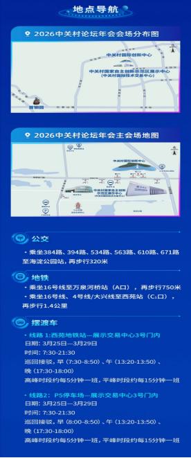 中关村论坛年会参会指南全新上线,线下参会两步就能轻松搞定专属电子证件,只需识别官方二维码、输入个人证件号码,即可查看并保存,实现会场 “码” 上畅行。本届论坛主会场分布在中关村国际创新中心、中关村国家自主创新示范区展示中心及首钢园三大核心区域,公交、地铁、摆渡车多种出行方式可选,两条摆渡车线路均从 3 月 25 日至 29 日 7:30-21:30 巡回接驳,高峰时段约 5 分钟一班,平峰时段 15 分钟一班,通勤效率拉满。首钢园分会场还支持自驾前往,论坛同时倡导绿色办会理念,建议大家选择公共交通低碳赴会,一起轻松高效畅享科技盛会!