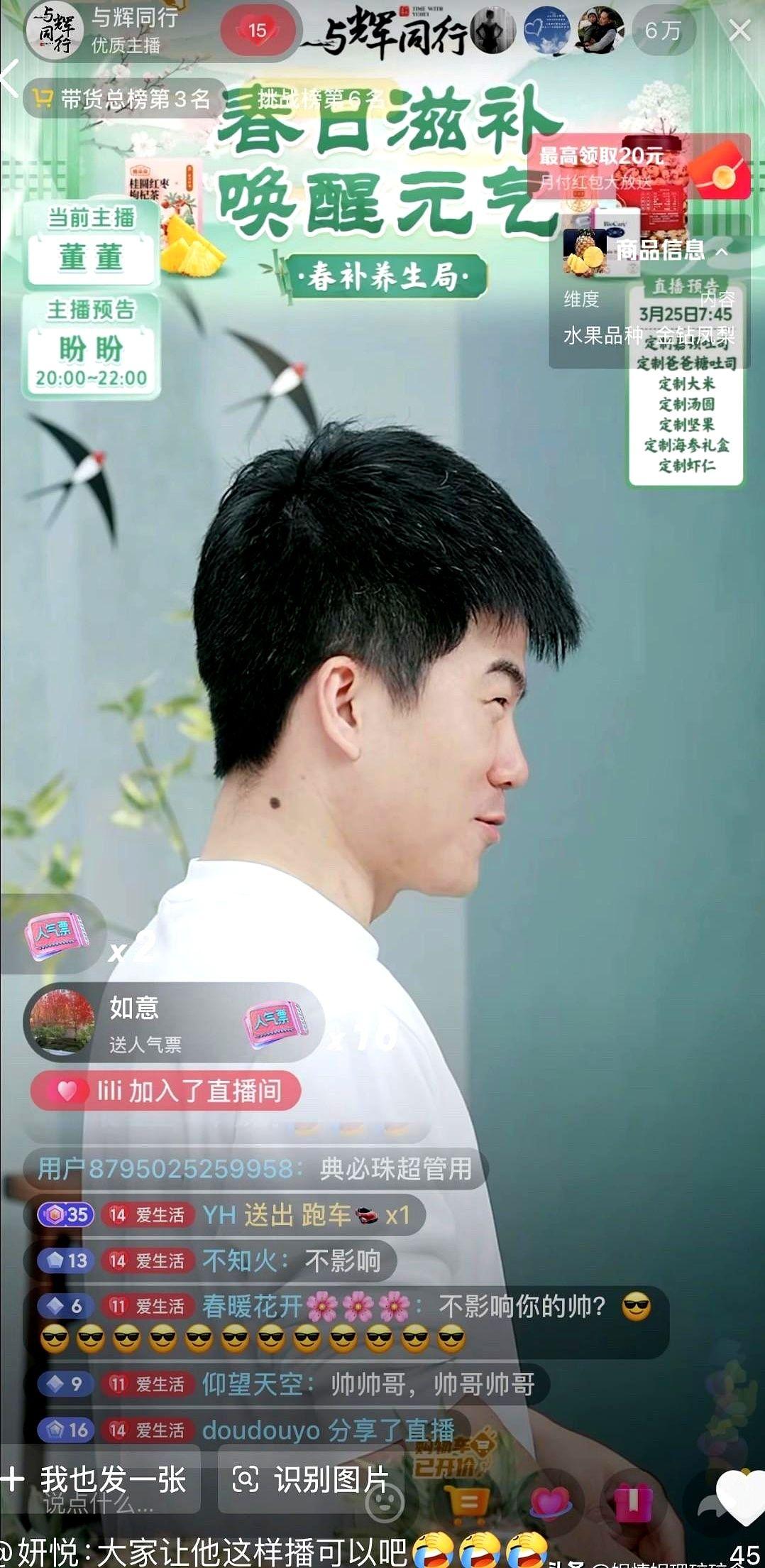 董宇辉捂着眼睛,突然空降直播间请假! 3月24号晚上,董宇辉突然出现,可把董董吓一跳,还以为是新来的同事。他用手捂着一只眼,说自己眼睛肿了,这周三、周四的直播都上不了。 他说最近花粉多,打完喷嚏眼睛痒,没忍住用手揉了。现在又红又肿又疼,网友一看就说这是麦粒肿,俗称“针眼”,得好好休息。他自己还开玩笑,说可能是会开太多了。 整个请假过程就几分钟,他一直遮着脸,不停道歉。评论区里全是心疼的,都说身体最重要,不差这两天。 大家让他安心养着,满血复活再回来。