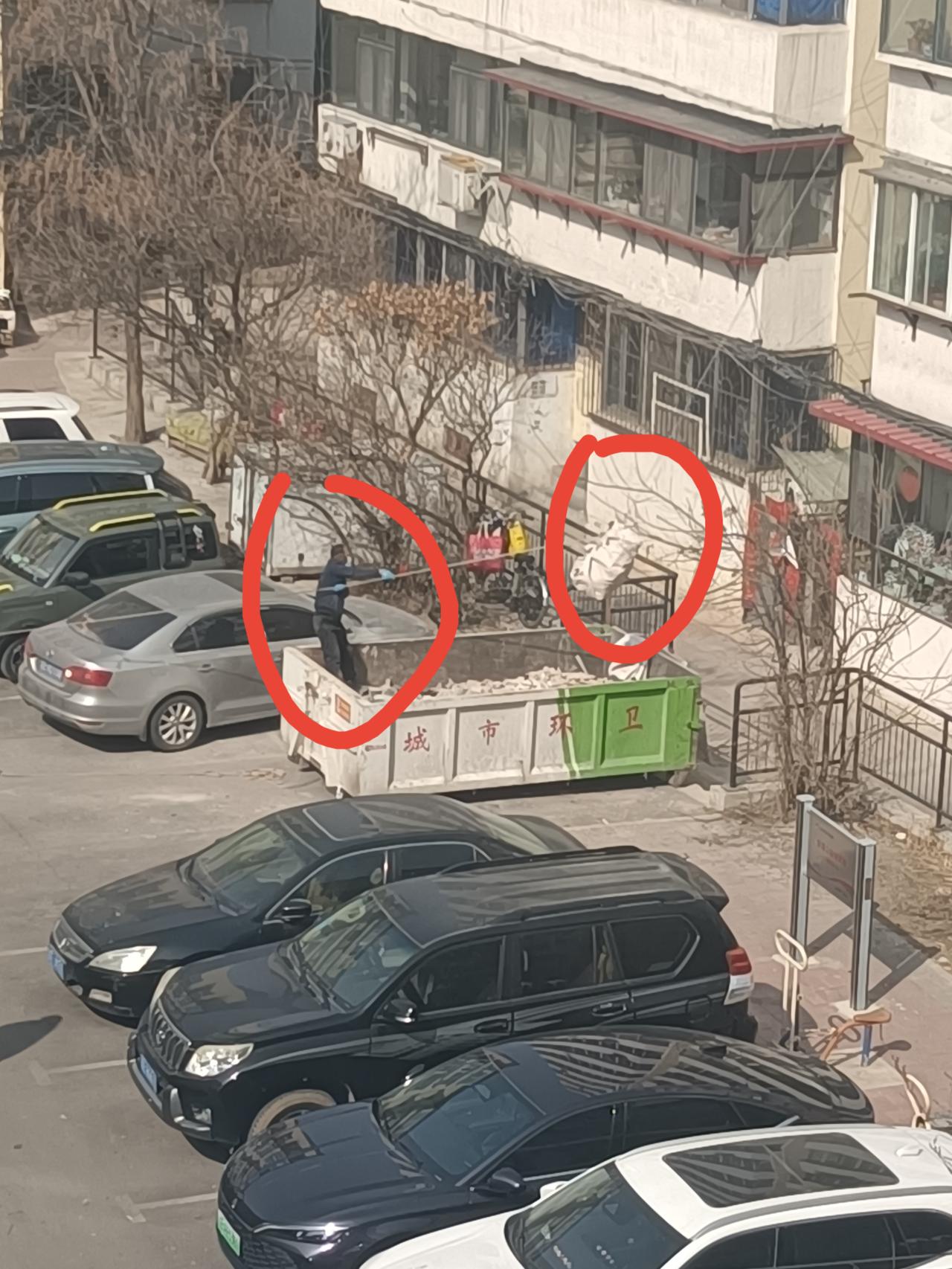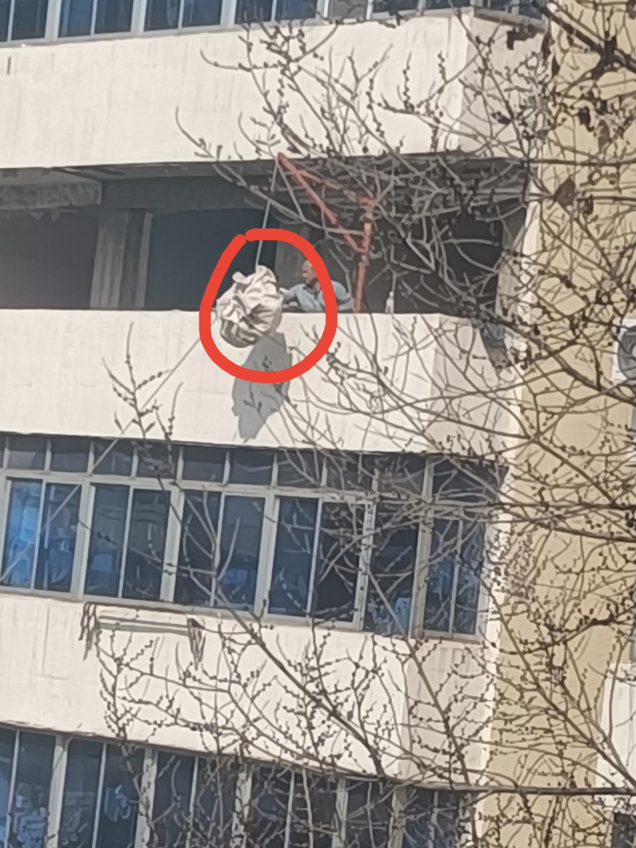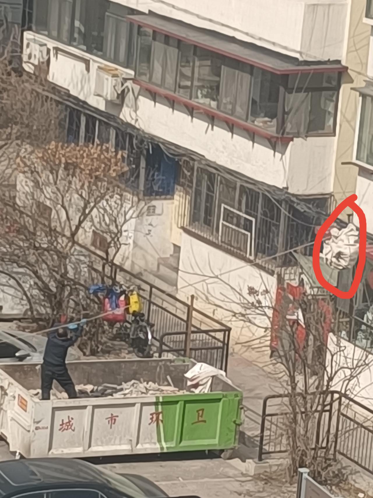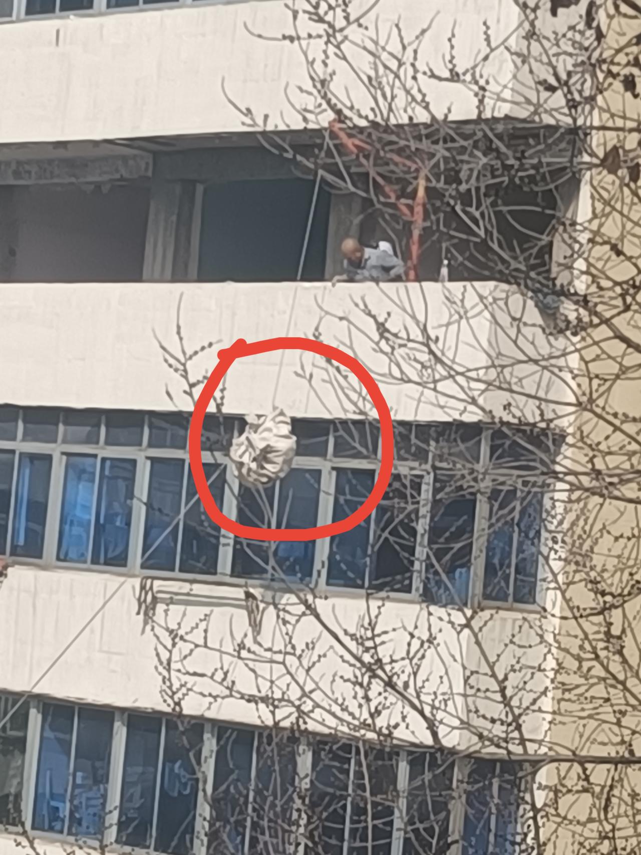 看看现在装修的新办法,省时省力。 院子里正在装修的这家是6楼。他家是把整个一层都买下了,约200平。渣土老多了,没有电梯。 我在我家这3楼看到工人运送的方式,不得不赞叹,现在这方式真巧妙!谁发明的呢? 如果搁以前,全靠人工,那得费老大劲了。