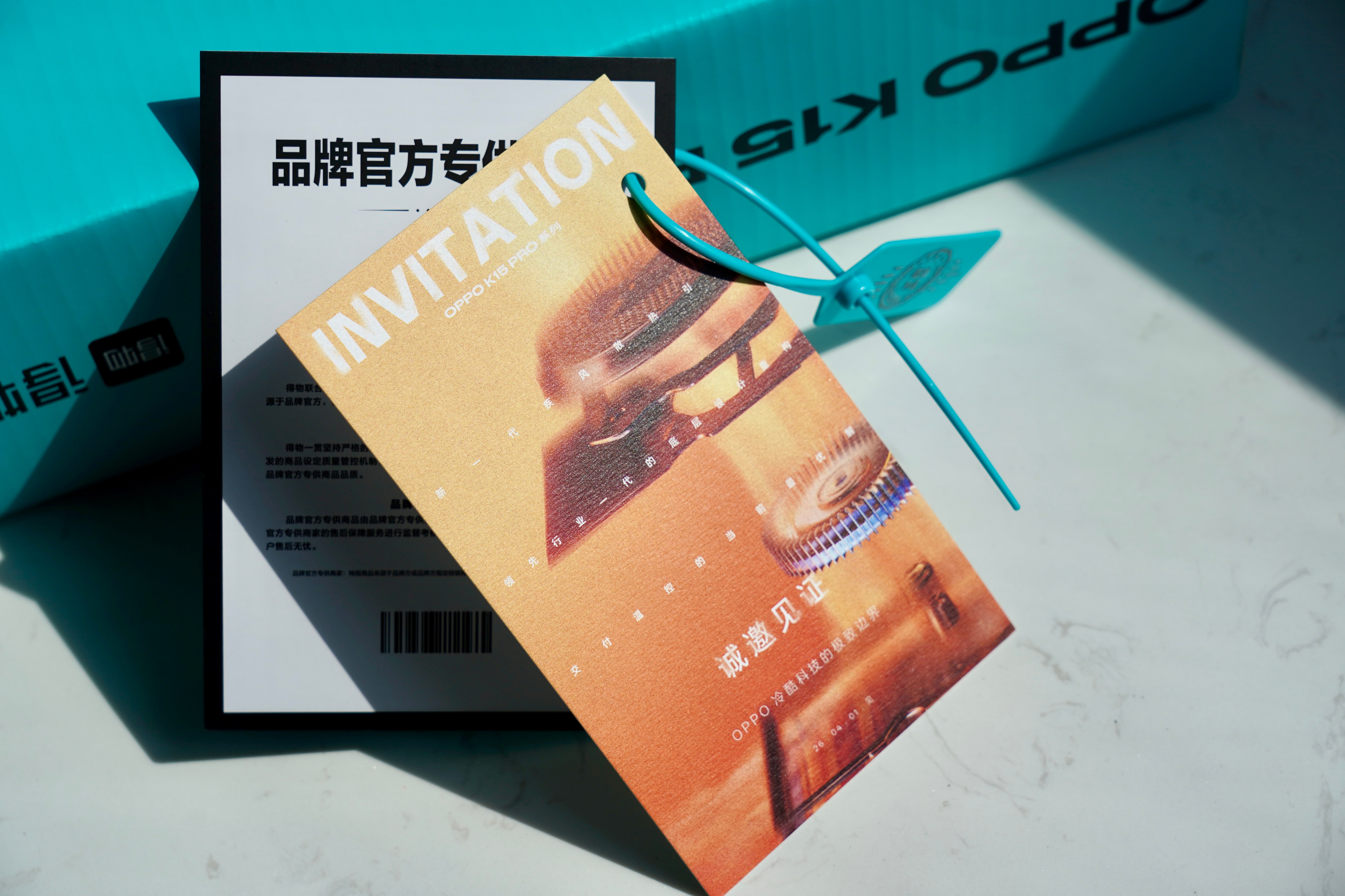 OPPO K15 Pro系列邀请函,居然是和得物联名,带得物鉴定卡片、防盗圈。还