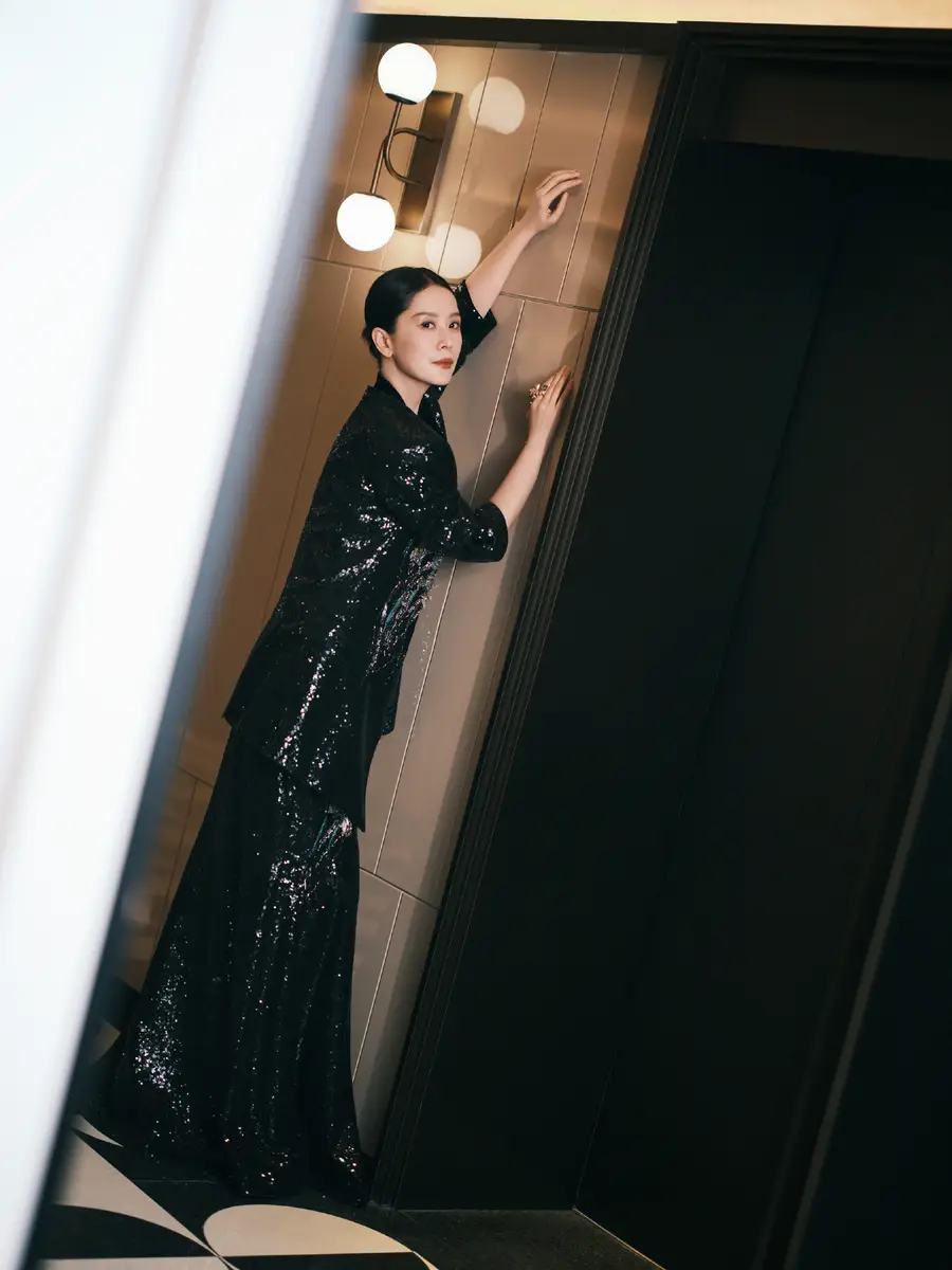 海清穿黑亮片鱼尾裙身段曼妙利落 冷调光影下干练又妩媚