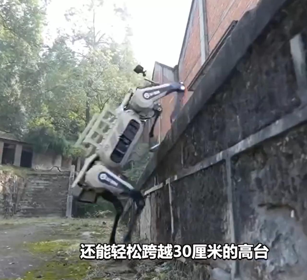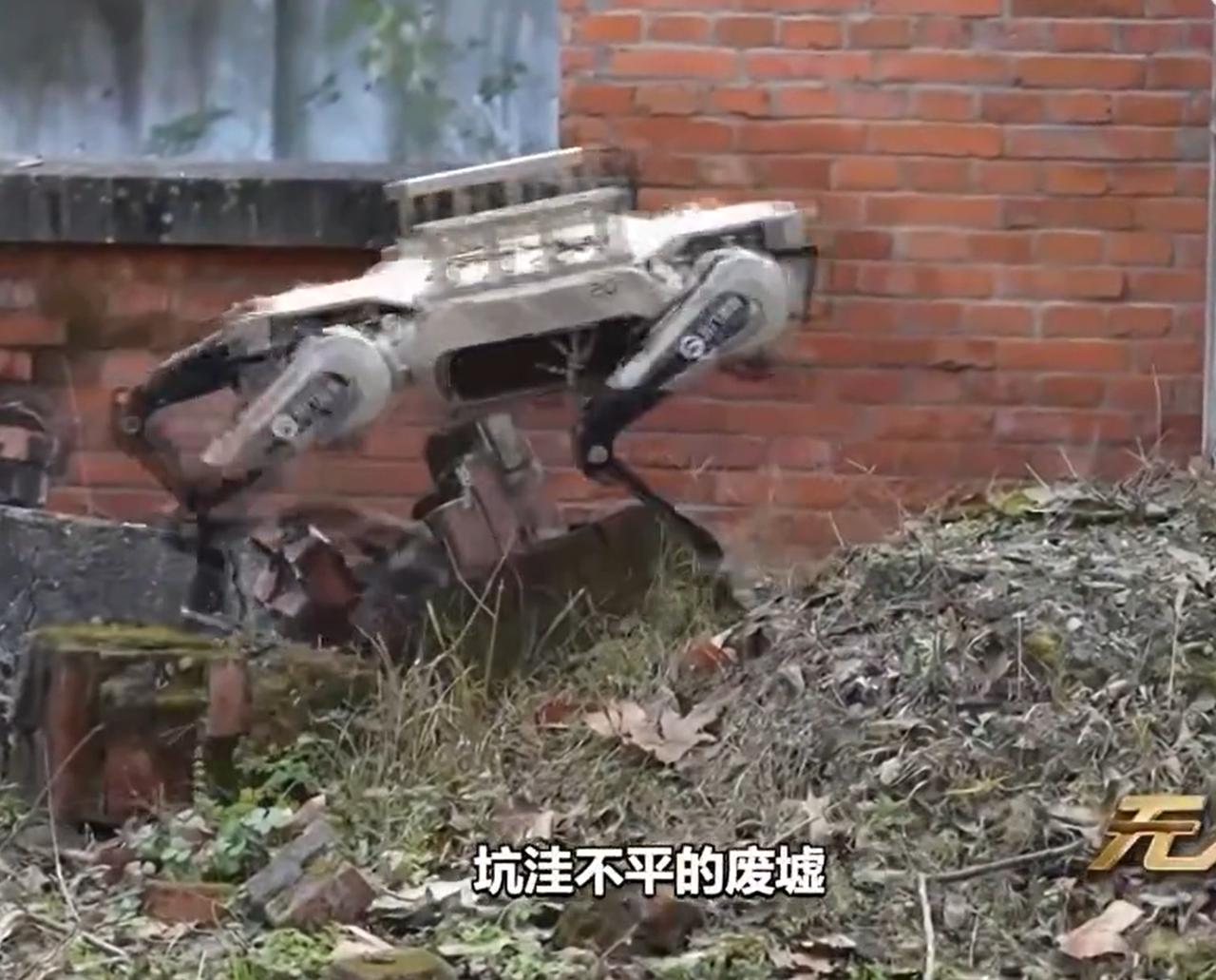 看到机器狼背着191步枪、榴弹枪、微型导弹,我点赞了。 看到机器狼组成三三制队形,我点赞了。 看到机器狼越过障碍,跳下高台,我点赞了。 但是看到机器狼,直接破门而入,冲入房内(图五图六),我还是没忍住笑了一下,然后点赞了。 因为这一冲撞,既带有一丝丝鲁莽,又带有一丝丝可爱,还带有一丝丝勇敢。