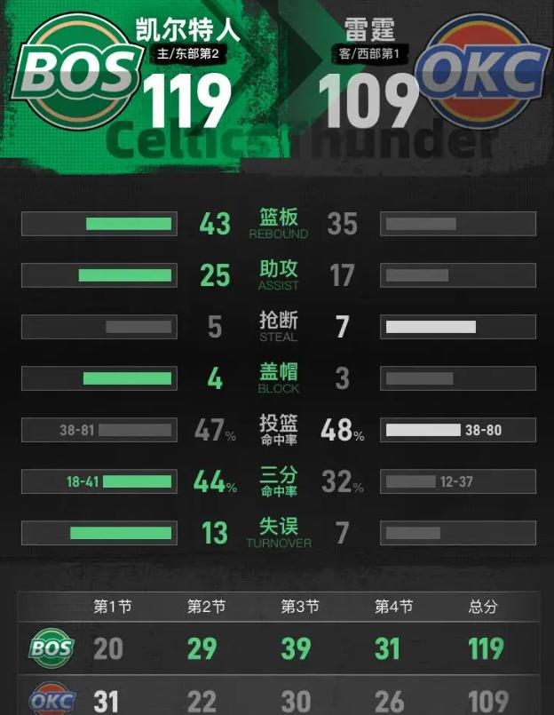 哥们儿,别被亚历山大那33分晃了眼!这场球就是现形记——数据刷子遇上真团队,立马露馅。凯尔特人今儿给雷霆上了一课:篮球不是一个人耍帅,是五个人玩命。 首节雷霆哐哐扔三分,领先11分,你以为联盟第一要翻车?结果第二节杰伦-布朗直接化身"波士顿炮仗",31分8板8助,拎着炸药包往禁区死磕!这哪是二当家,分明是扛着球队走的真爷。再看SGA,33分里一半是罚球,关键时刻手软得跟隔夜面条似的,突进去不敢打,甩锅卡鲁索投三分,这操作神了。 最逗的是霍姆格伦,堂堂"排骨战神"就拿了10分5板,被绿军替补克塔(奎塔)收拾得服服帖帖。克塔就一葡萄牙大个,今儿13分5板2帽,把你内线凿穿了。雷霆防守漏得跟筛子一样,让凯尔特人射出近四成三分,这还玩啥? 塔图姆今儿19分确实不烫手,但12板7助,脏活累活全包。第四节布朗喘口气,他立马稳住场子,这叫基本盘!反观雷霆,SGA一下场,全队直接断电,杰伦-威廉姆斯7分,这就是你们吹的"未来之星"?说白了,雷霆离了亚历山大不会打球,凯尔特人少了谁都能转。 这场球暴露真相:常规赛你能靠罚球刷出漂亮数据,到了季后赛真刀真枪,团队捏合才是硬道理。戴格诺特今儿调兵也死板,明明内线吃亏,还死用蹲坑。马祖拉这边,六人上双,全民皆兵。记住,篮球是五个人的活,一个人再能抡,也抡不出总冠军。杰伦布朗塔图姆SGA绿军胜雷霆