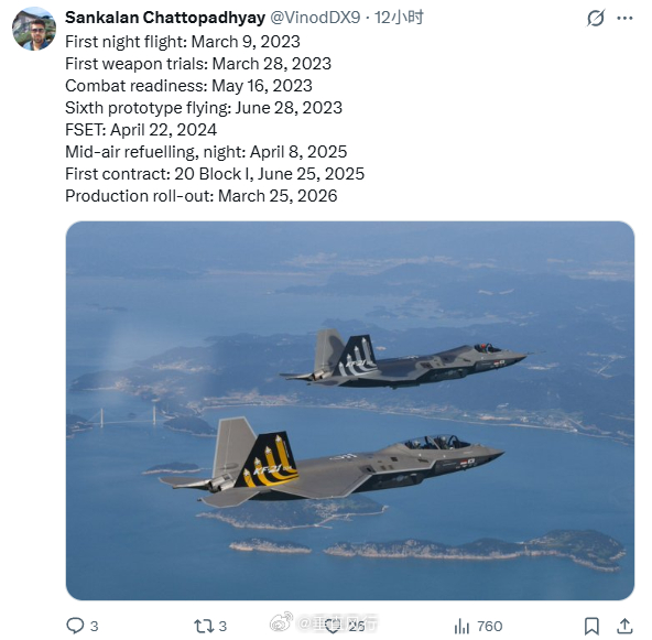印度网友似乎注意到了KF-21量产型交付的新闻,并列出了型号发展的时间线,我以为是要反思LCA、AMCA进度,结果最后来了句20年就造了个4.5代?你也不能说他说的不对吧,但就有点...难评...航空创作计划武器装备