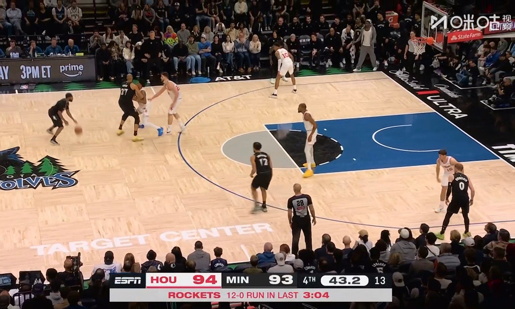 缺少华子,决战时刻没有硬解人,森林狼被火箭干了12-0。火箭vs森林狼