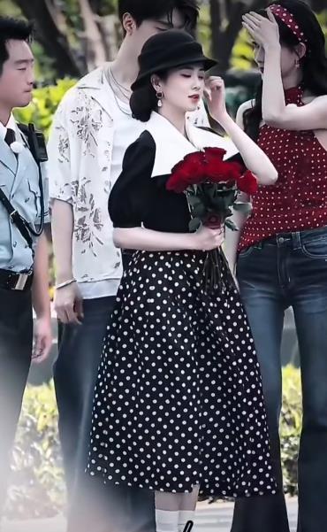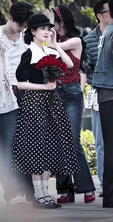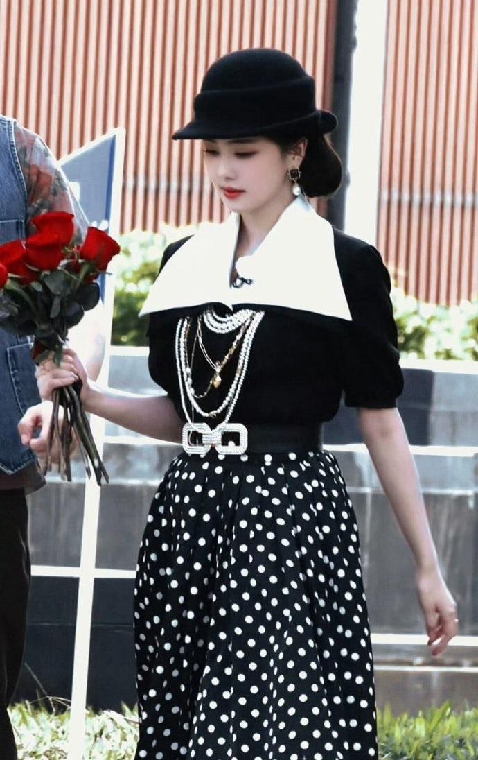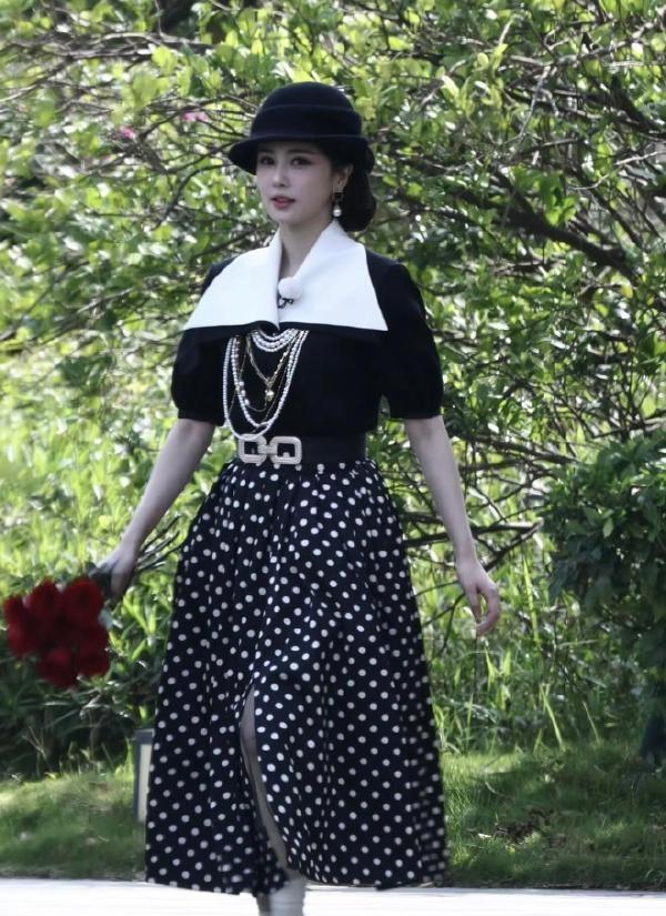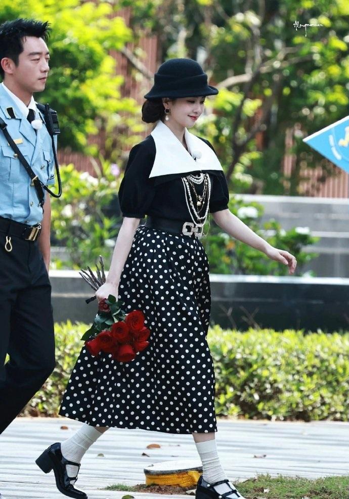今天白鹿和李晨一起去录制奔跑吧,两位搭配的都很时尚,看起来像一对年轻的情侣。 白鹿上身穿黑色大翻领外套,下身搭配漂亮的波点裙,凸显出了满满的飘逸之美。 她这次特意拉高了腰线,还展现出了完美的身材比例,像个靓丽的少女。 白鹿脚踩黑色的小皮鞋,头戴黑色圆帽,展现出了满满的复古时尚风情。 她留着超美的秀发,还搭配了奢华的珍珠耳坠,画着精致的妆容,很有大家闺秀的气质。 李晨里面穿彩色的印染风衬衣,外面搭配牛仔坎肩,下身穿深色裤子,也显得英俊又潇洒。