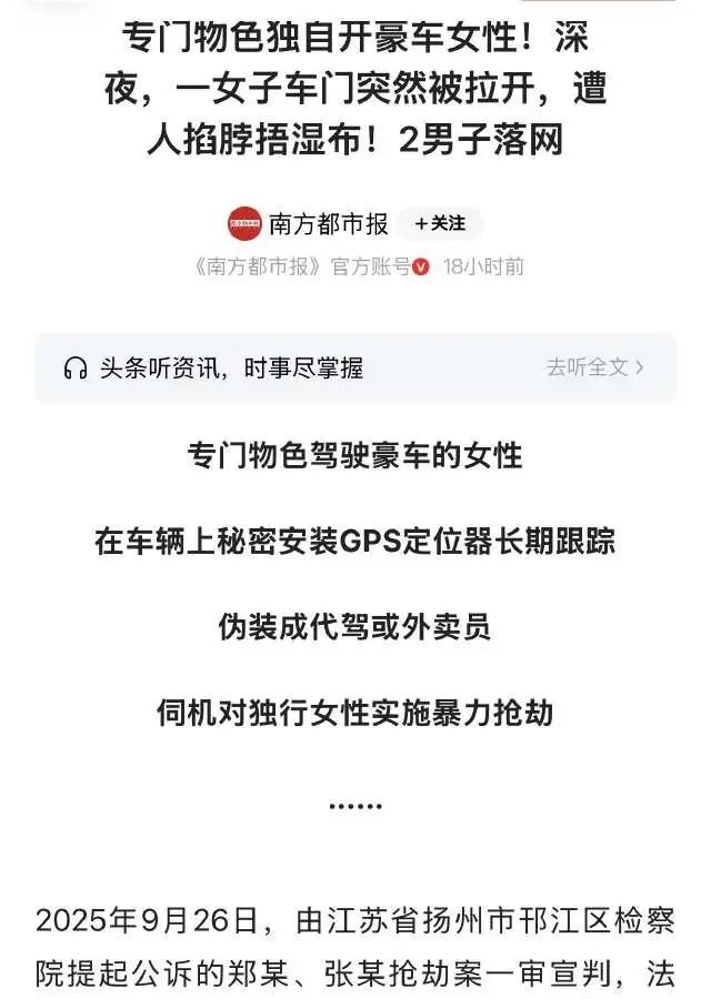 江苏扬州,一女子看完演唱会,准备去停车场发动车子回家。车子刚启动,一位穿着代驾服装的男子,突然拉开女子的车门坐进去,说自己的电动车没电了,请求女子帮忙捎到小区门口。到了小区门口,女子刚停车,男子就用一块湿布捂住她的口鼻,女子先是假装晕倒,之后趁机拉开车门逃跑,并且向附近的巡逻车求救。 短短几分钟,从善意相助到命悬一线,这位姑娘用冷静与机智,从恶魔手中抢回了自己的命。可这件事之所以刷屏,戳中无数人,从来不是因为猎奇,而是它赤裸裸地揭露了一个扎心真相:你以为的举手之劳,可能是别人精心布下的陷阱;你心软的善意,竟会成为伤害自己的利器。 很多人看完第一反应是后怕:换作是我,大概率也会心软同意。深夜停车场,对方穿着正规代驾服,语气诚恳,理由合理不过电动车没电,顺路捎到小区门口,谁能拒绝一个看似弱势的求助者?我们从小被教育要与人为善,要乐于助人,可现实却一次次告诉我们,善良没有锋芒,就是在给坏人可乘之机。 这名男子根本不是什么没电的代驾,而是提前蹲守、瞄准独行女性的恶徒。他精准拿捏了人性的弱点:深夜、女性、独自开车、不好意思拒绝陌生人的合理请求。从拉开车门的那一刻起,所有的温柔客套,全是演戏。他要的不是顺路一程,而是控制你的人身自由,图谋你的财物,甚至做出更可怕的事。 当湿布捂住口鼻的瞬间,恐惧足以压垮任何人。女子没有慌乱哭喊,没有拼命挣扎激怒对方,而是选择最聪明的方式假装晕倒。这是绝境里的顶级清醒:力量悬殊之下,硬拼只会让自己陷入更危险的境地,示弱麻痹对方,才能换来一线生机。等到歹徒放松警惕,她立刻开门狂奔,朝着巡逻车拼命求救,整套操作冷静到让人敬佩,也让人心疼。 我们总在歌颂善良,却很少有人提醒:善良必须带点智商,心软必须设好底线。 独行女性深夜开车,陌生人未经允许拉车门上车,无论对方穿着什么、说得多可怜,第一反应都应该是拒绝,而不是犹豫。地下车库、偏僻路段、深夜街头,从来都是危险高发地,你的不好意思,在坏人眼里就是好欺负。 更让人脊背发凉的是,这类伪装作案早已不是个例。假代驾、假外卖员、假维修工,他们披着合理身份的外衣,利用我们的信任靠近,一旦上车关门,密闭空间里,女性往往处于绝对弱势。这不是危言耸听,是无数真实案件换来的教训。 好在天网恢恢,歹徒最终被警方抓获,受到了法律的严惩,女子也平安脱险,这是最圆满的结局。可这件事给所有人的警示,永远不该被忘记:出门在外,尤其是独自出行,拒绝陌生人不需要愧疚,保护自己永远第一位。 别让你的善良,成为刺向自己的刀;别让你的心软,葬送自己的安全。 我们依然相信世界美好,依然愿意帮助真正需要的人,但请记住:善良要有尺,防备要有度。深夜不搭陌生便车,不让陌生人随意上车,遇到不对劲立刻求助、果断逃离,这不是冷漠,是对自己最负责的保护。 评论区聊聊:如果是你,深夜遇到陌生人请求顺路捎带,你会同意吗?你平时有哪些保护自己的小习惯?代驾上车行凶 女子遇袭装晕机智逃生