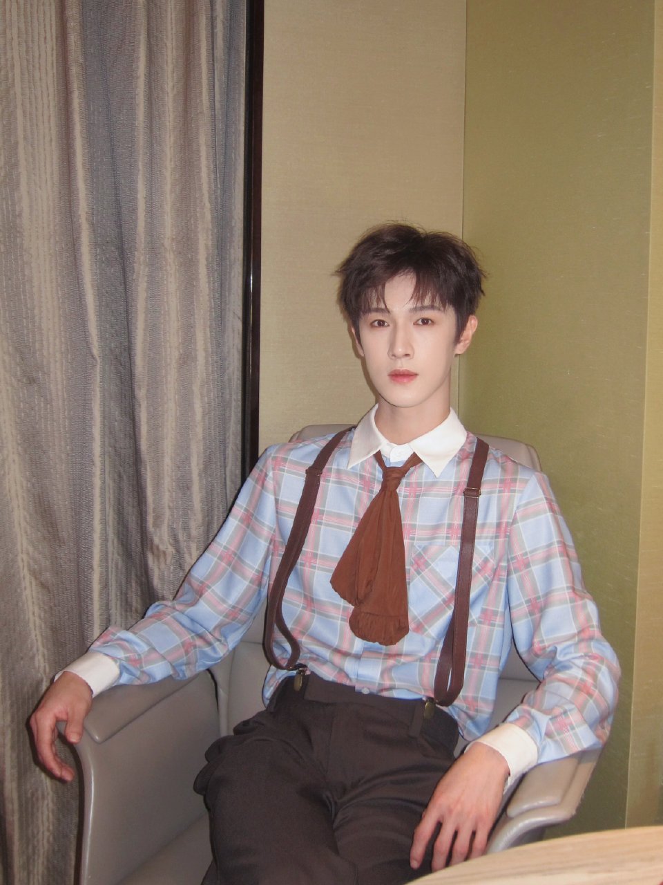 李昀锐格子衬衫背带裤lyr李昀锐出发录跑男