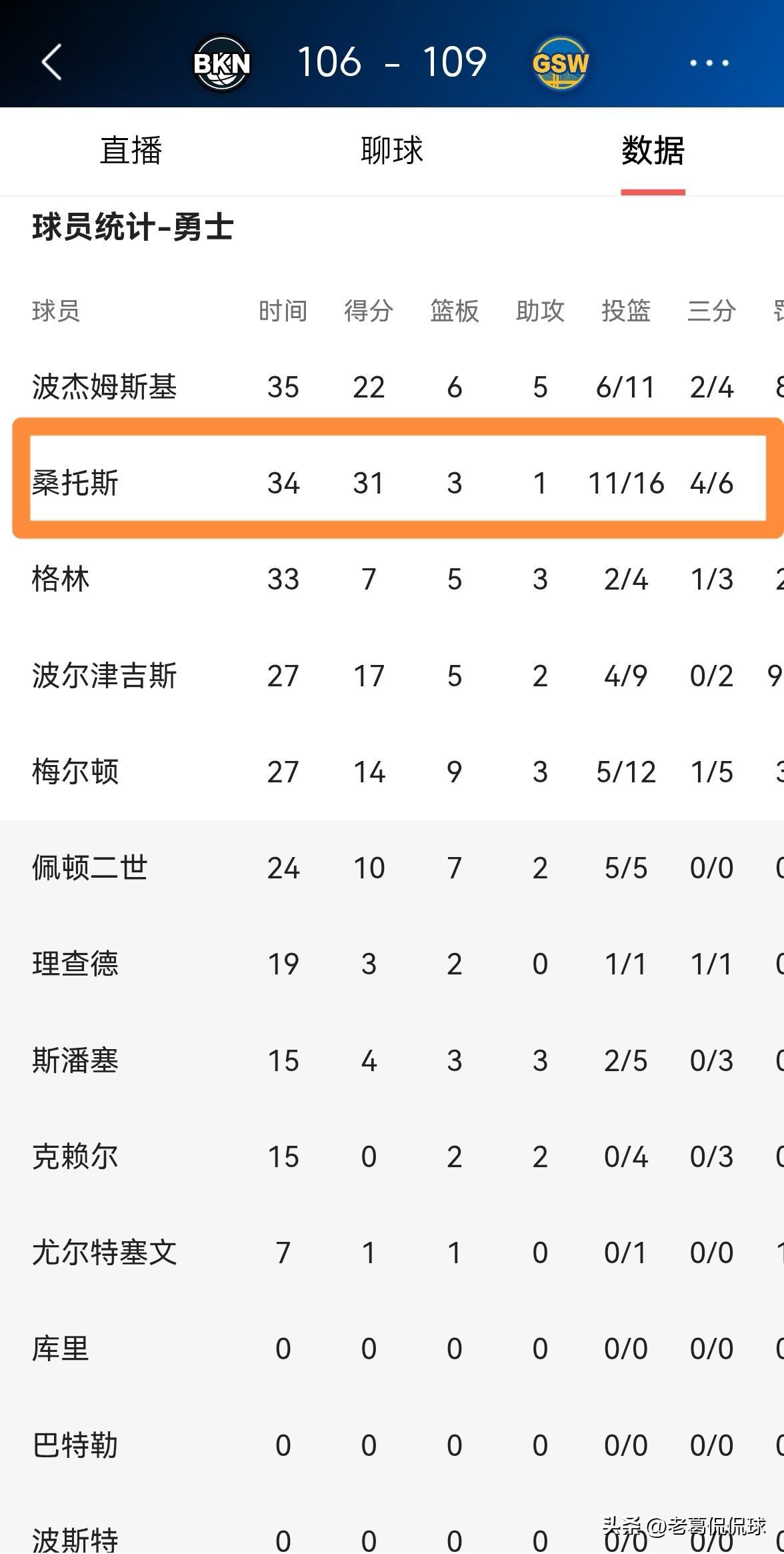 勇士新星桑托斯真是当之无愧!在今天勇士主场以109:106力克篮网的赛后,勇士官方特意更新社媒,评选出了本场比赛的最佳球员,结果此役砍下31分3篮板2抢断的桑托斯成功当选。 实事求是的说,以桑托斯在本场比赛中的精彩表现来看,他的当选是当之无愧的,桑托斯完全配得上这份殊荣。