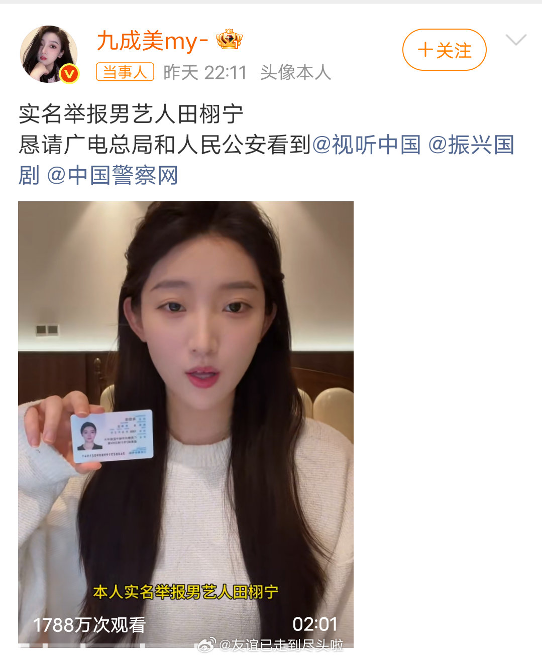 炸锅!九成美实名举报田栩宁,娱乐圈惊天罗生门,反转太打脸全网炸了!网红九成美