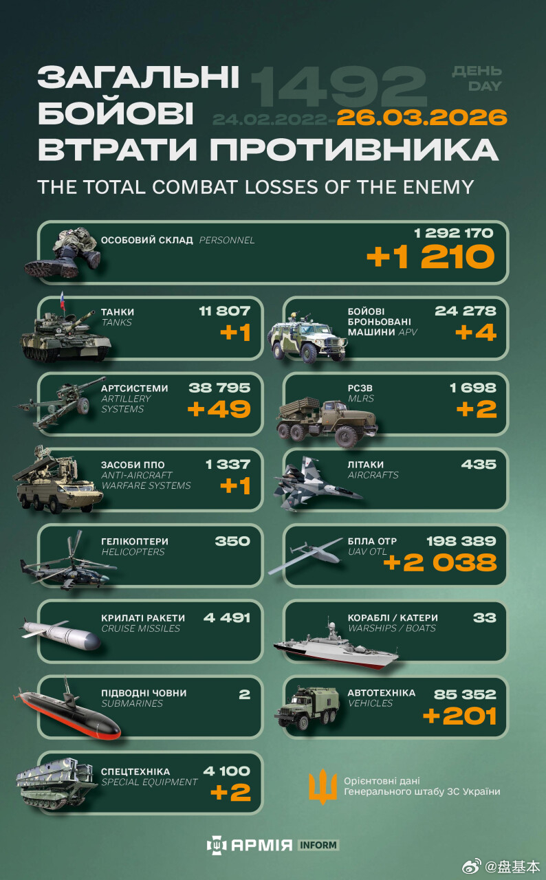 截至2026年3月26日“超级大国”俄罗斯损失战报