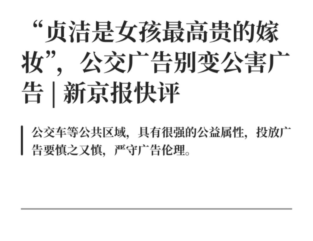 四川公交车广告引发轩然大波,背后实则是文化观念的激烈碰撞! 当下,有人打着“开放”旗号,把放纵当进步,把传统美德污为糟粕,这简直是对时代精神的误读、社会风气的毒害。 咱坚守的“贞洁”,可不是针对某一性别的束缚,而是不分男女的道德底线,是自重、忠诚、敬畏与担当,是中华文明传承千年的核心美德。 反观一些错误思潮,受西方极端观念侵蚀,鼓吹无底线性开放,冲击公序良俗。 咱得明白,西方文明有值得学之处,但思想文化层面,中华文明远超其上。 咱不能盲目排外,但更不能忘本。学习西方,只取科技之长,不惑思想之俗。 大家觉得,面对这些错误思潮,我们还能做些什么来守护传统美德呢?快来评论区说说你的想法!