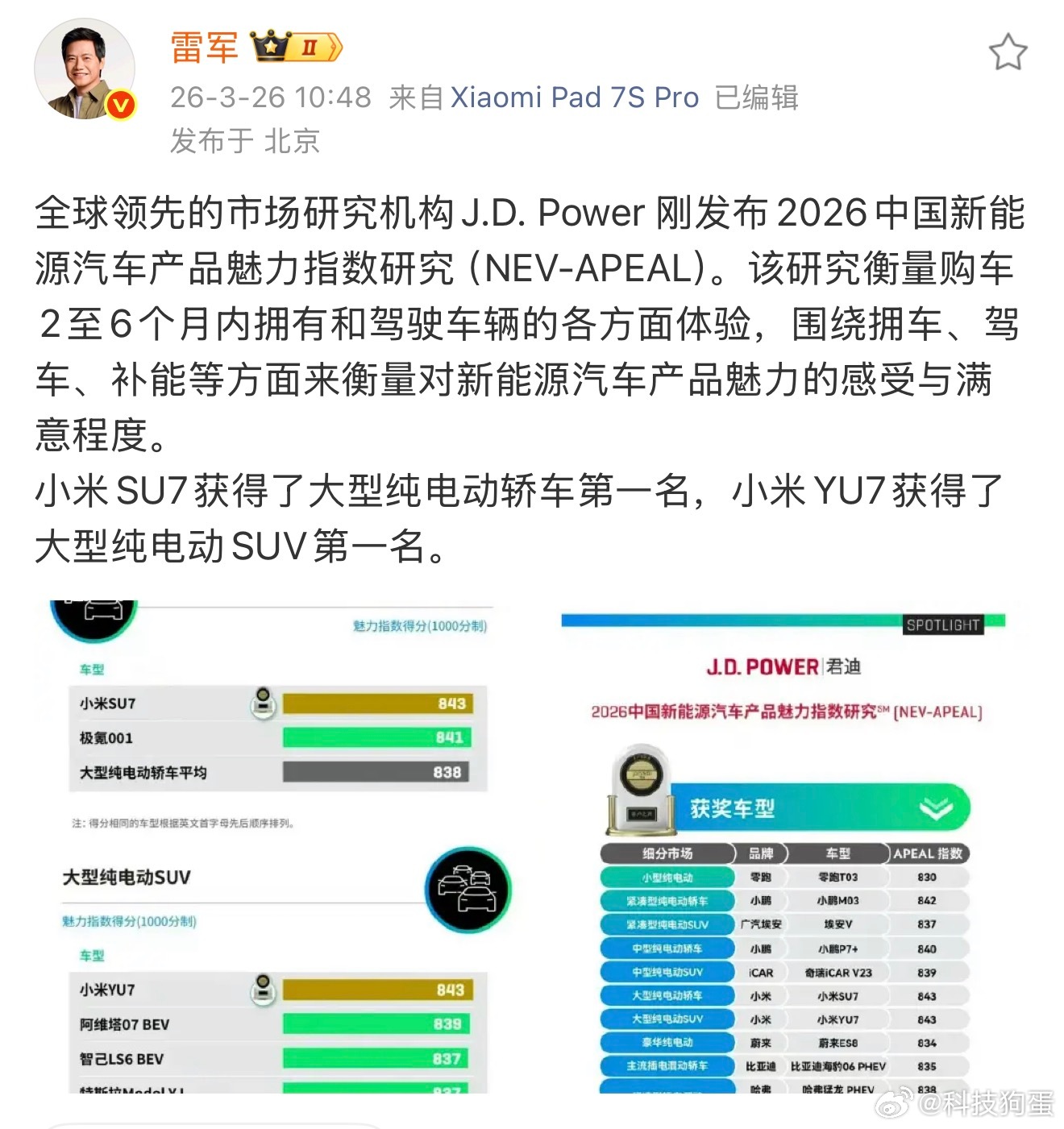 老款SU7都能连续两年霸榜,等明年新一代上来,其他品牌怕是要捏把汗了。魅力这件事,一旦形成了口碑,就很难被逆转。雷军回应小米双车登顶JDPower魅力榜雷军谈小米双车获JDPower魅力榜第一