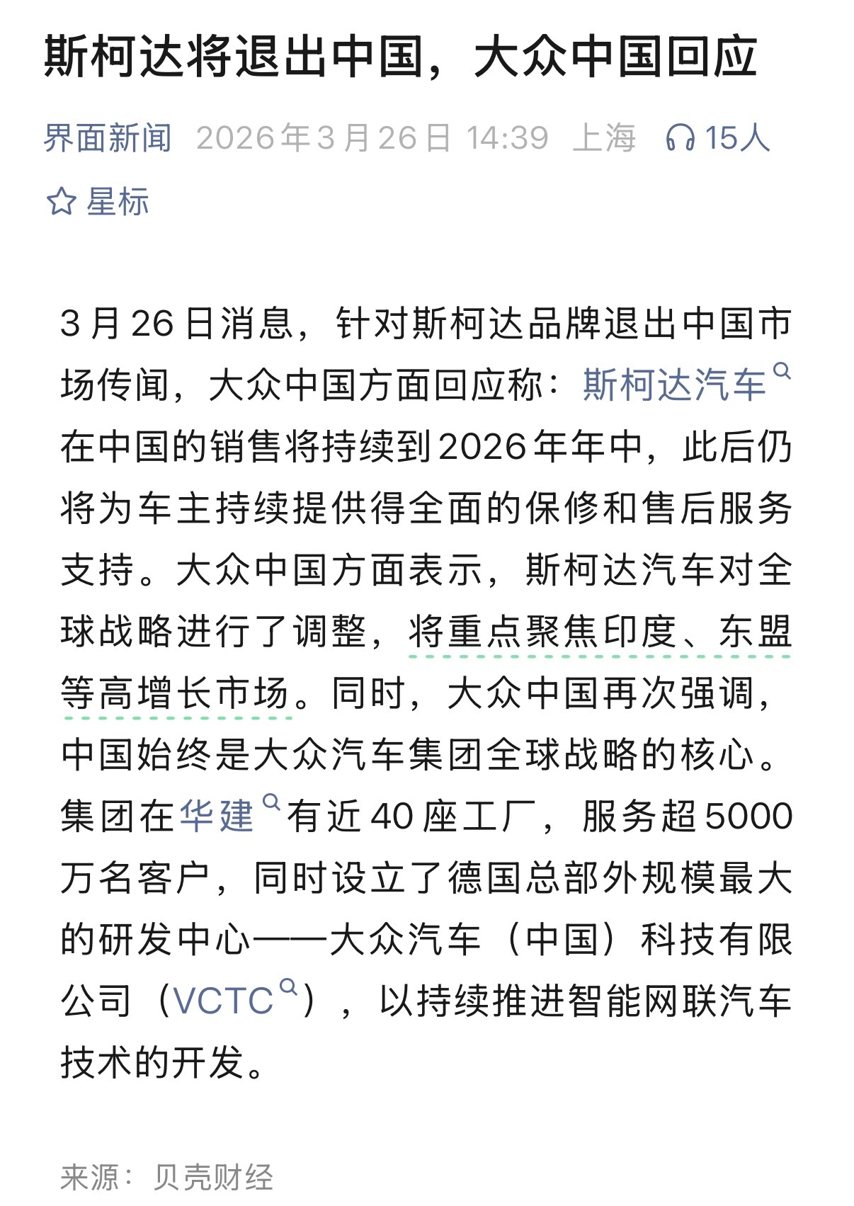 斯柯达要退出中国市场了销售持续到2026年中,说是能持续给车主提供保修和售后……大v聊车买车之前先问驾