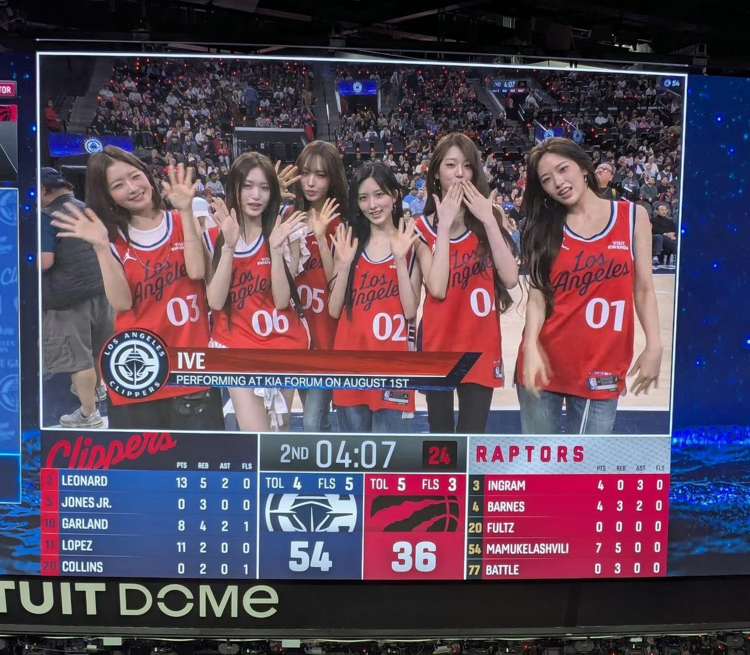 NBA赛场偶遇iveiveG社生图 ive今日现场观看快船比赛 不愧是六立绘全员
