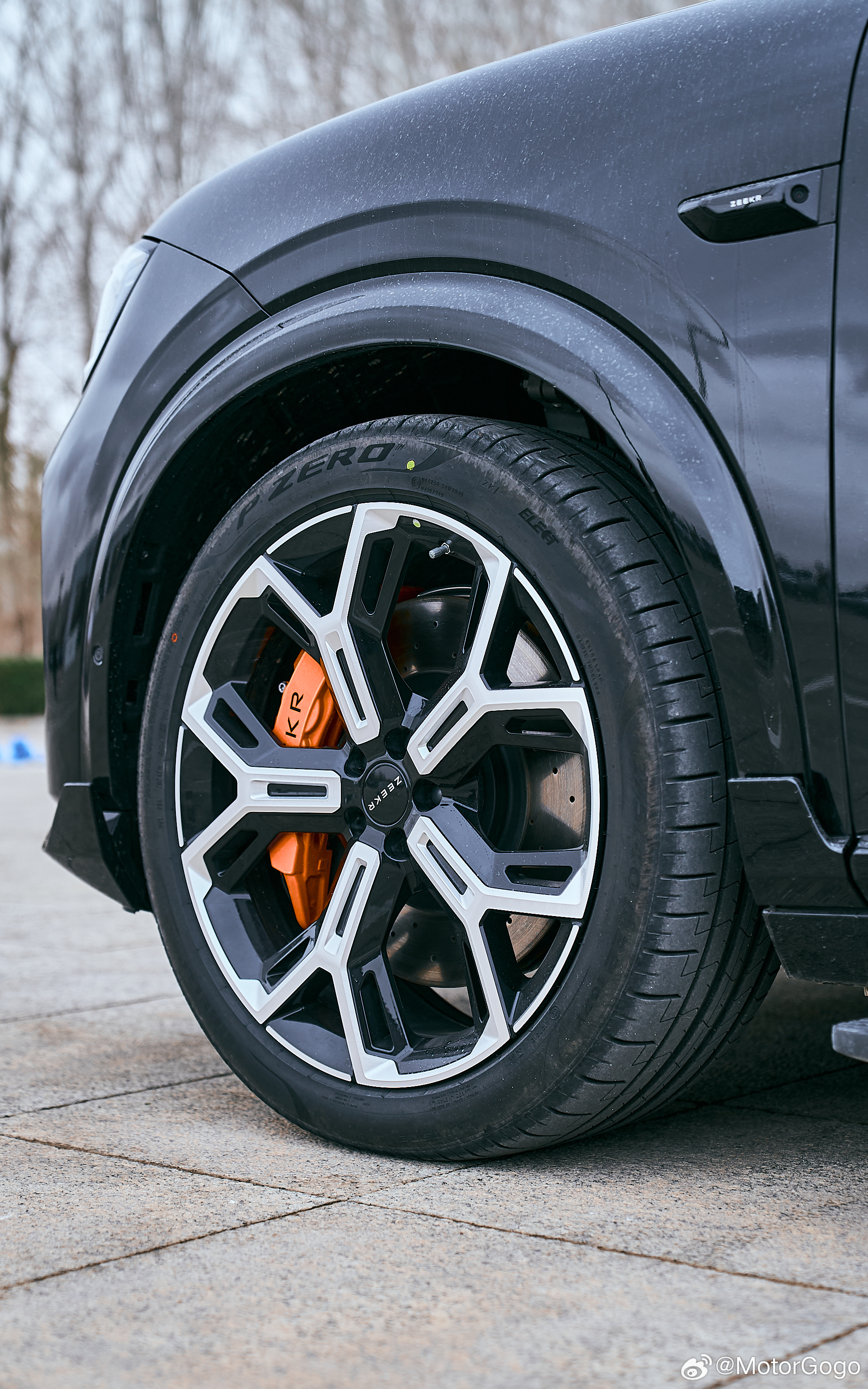 普通版虽然也是鸳鸯胎,但是是前 255/50 R21,后 275/40 R22;而曜影版是前275/40 R22,后 315/35 R22,更宽更大。