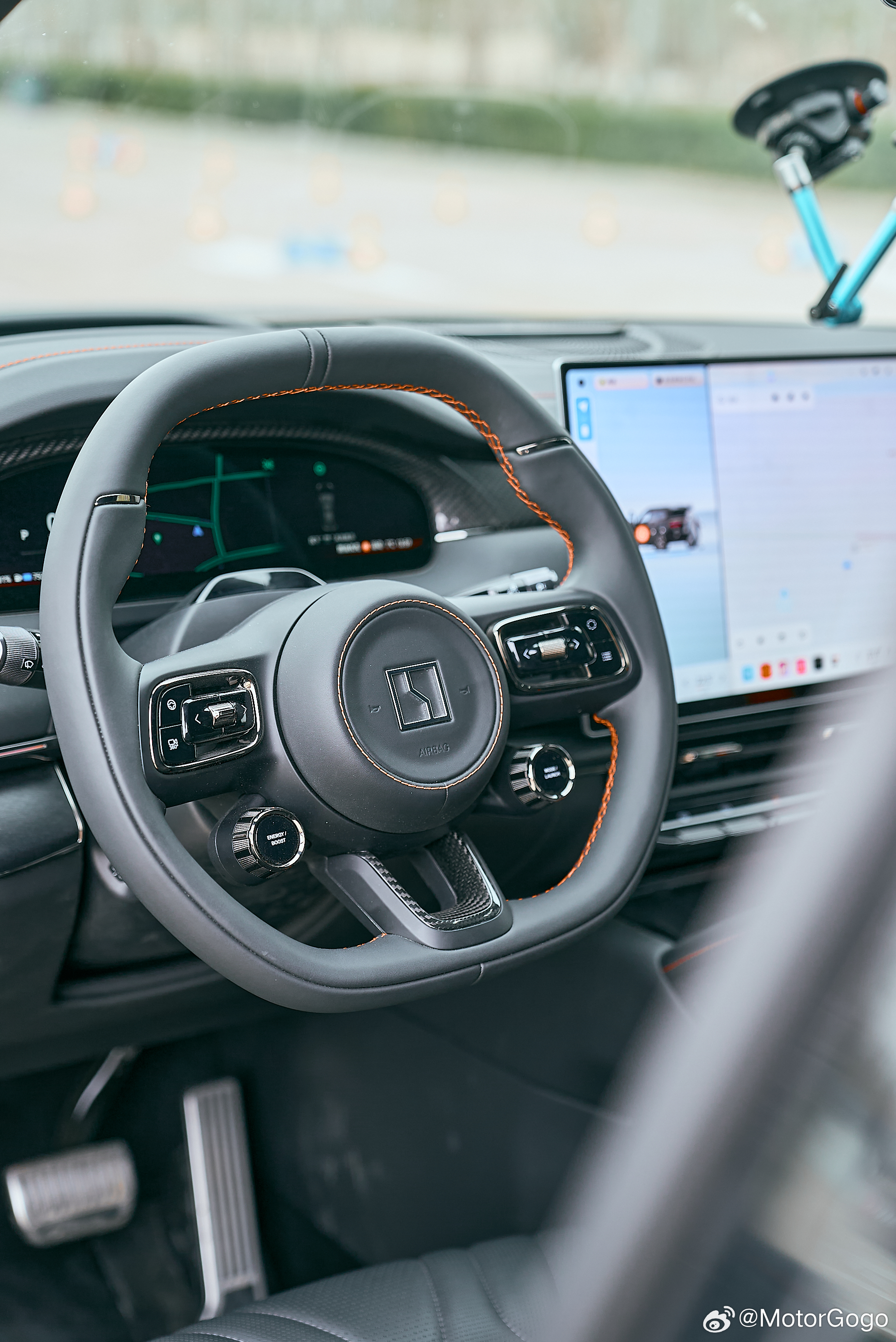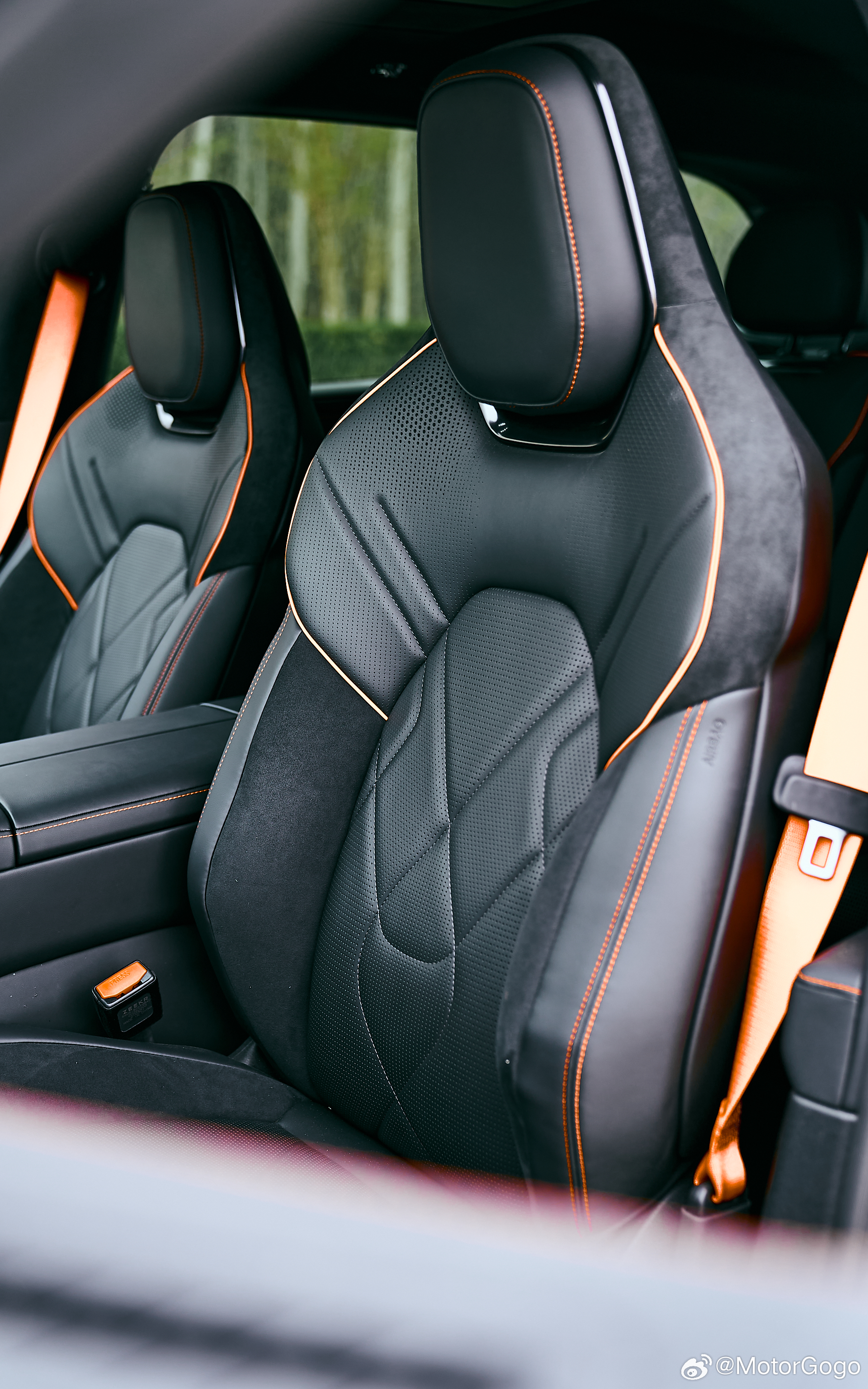 内饰的变化主要就是增加了橙色的缝线以及部分碳纤维材质,并且方向盘也新增了两颗性能按键。