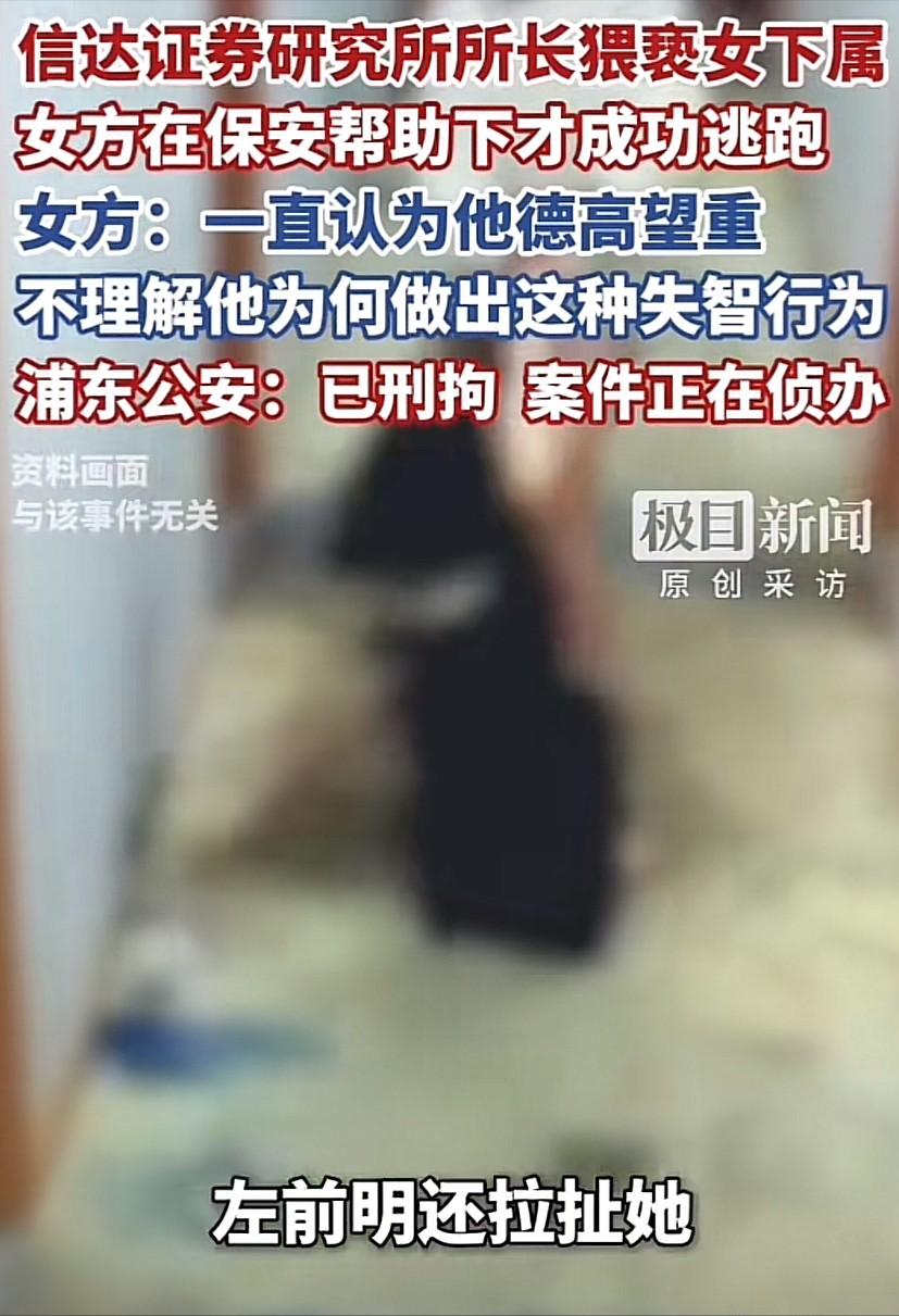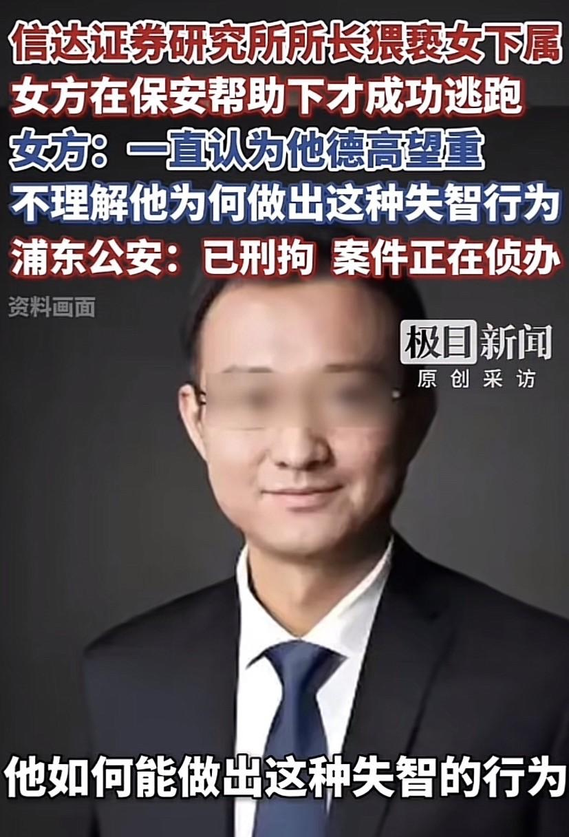 上海,一研究所所长让一名女下属陪同自己出差,期间,在与女下属共同参加一饭局后,在回酒店的出租车上对女下属动手动脚,到了酒店后,依旧不依不饶,还对女下属说“打一针就好了!”女下属吓坏了,多次奋力反抗无果,幸好是酒店保安站了出来,才得以脱身并报警。事后,女下属将此事曝光,并直言想不通为何一向德高望重、为人正直、爱惜下属的好领导会做出这样失智的行为。据悉,目前,涉事研究所所长已经被警方抓获并刑拘,也已经被研究所暂停了所有的工作。 事件中的女研究员唐某,2023 年进入这家研究所工作,近三年的时间里,她始终专注于科研业务,在岗位上踏实履职,对单位的工作氛围与团队关系,一直保持着认可与信任。 在唐某的认知里,研究所所长左某是行业内的标杆人物,他拥有博士学历,在能源研究领域深耕多年,积累了扎实的专业功底与丰富的行业经验,还曾在行业协会担任重要管理职务。 2025 年升任所长之后,带领团队完成多项核心研究课题,斩获多项领域内专业奖项,是同事与同行眼中的技术权威。 日常工作中,左某展现出的形象温和稳重,对待下属态度亲和,在团队管理与工作指导上都较为用心,这也让唐某对这位领导充满敬意,从未想过会在出差途中遭遇意外状况。 按照工作安排,左某安排唐某陪同前往上海出差,参与行业交流与业务对接,两人一同前往目的地并按计划开展工作。 出差期间的一场工作饭局结束后,两人一同乘坐出租车返回入住酒店,途中左某出现肢体骚扰行为,唐某当即表现出抗拒与回避,试图摆脱对方的不当举动,却未能有效制止。 抵达酒店大堂后,左某依旧没有停止骚扰行为,持续对唐某进行拉扯与纠缠,唐某在慌乱中奋力反抗,现场的混乱状态引起了酒店保安的注意。 保安及时上前介入劝阻,为唐某创造了脱身的机会,脱离控制后,唐某第一时间拨打报警电话,向警方说明遭遇的情况。 接到报警后,上海浦东警方迅速出警抵达现场,固定相关证据并开展调查取证工作,对事件经过、现场情况与当事人陈述进行全面核实。 随着调查推进,左某的违法事实逐步清晰,其行为已涉嫌强制猥亵,警方依法对其采取刑事强制措施,将其刑事拘留。 事件曝光后,涉事研究所第一时间发布声明,称已关注到相关舆情,立即暂停左某全部职务与工作权限,启动内部合规核查程序,明确表示会全力配合警方的侦查工作,严格按照后续调查结果与单位规章制度作出处理。 这起发生在出差途中的职场骚扰事件,引发了公众对职场权力边界与职场安全的广泛讨论。 职场之中,上下级之间的权力差异应当被约束在工作范畴内,任何利用职务便利侵犯他人人身权利的行为,都突破了法律与道德的底线。 我国民法典与妇女权益保障法均明确规定,机关、企业、学校等单位有责任采取预防、处置措施,制止利用职权与从属关系实施的性骚扰行为,劳动者的人格尊严与人身安全受法律严格保护,职场权力从来不是可以肆意妄为的理由。 事件的调查与处置仍在推进中,左某的职业生涯因一时的失序行为面临重大转折,而唐某在遭遇侵害后选择勇敢发声、主动维权,也为职场中面对类似困境的人提供了参照。 职场环境的清朗,需要每一位职场人守住行为边界,更需要用人单位压实管理责任,让权力在规则内运行,让每一位劳动者都能在安全、尊重的环境中开展工作。