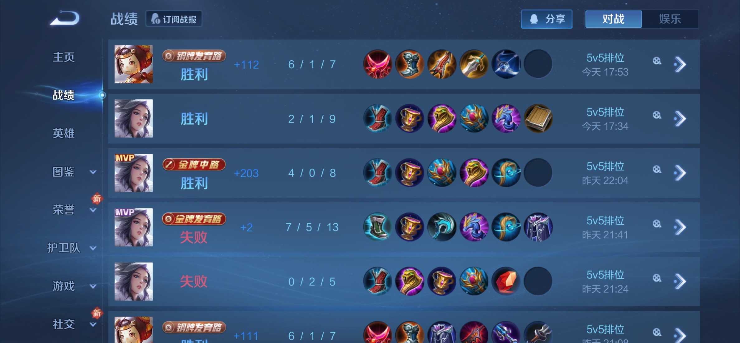 历时四个晚上,成功帮同担从钻石二打上王者段位。上分顺利,圆满收官!