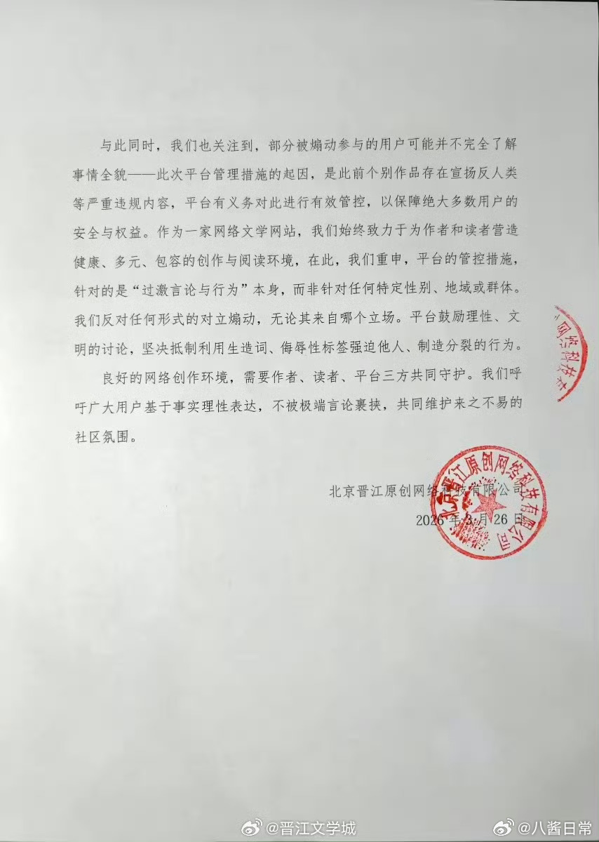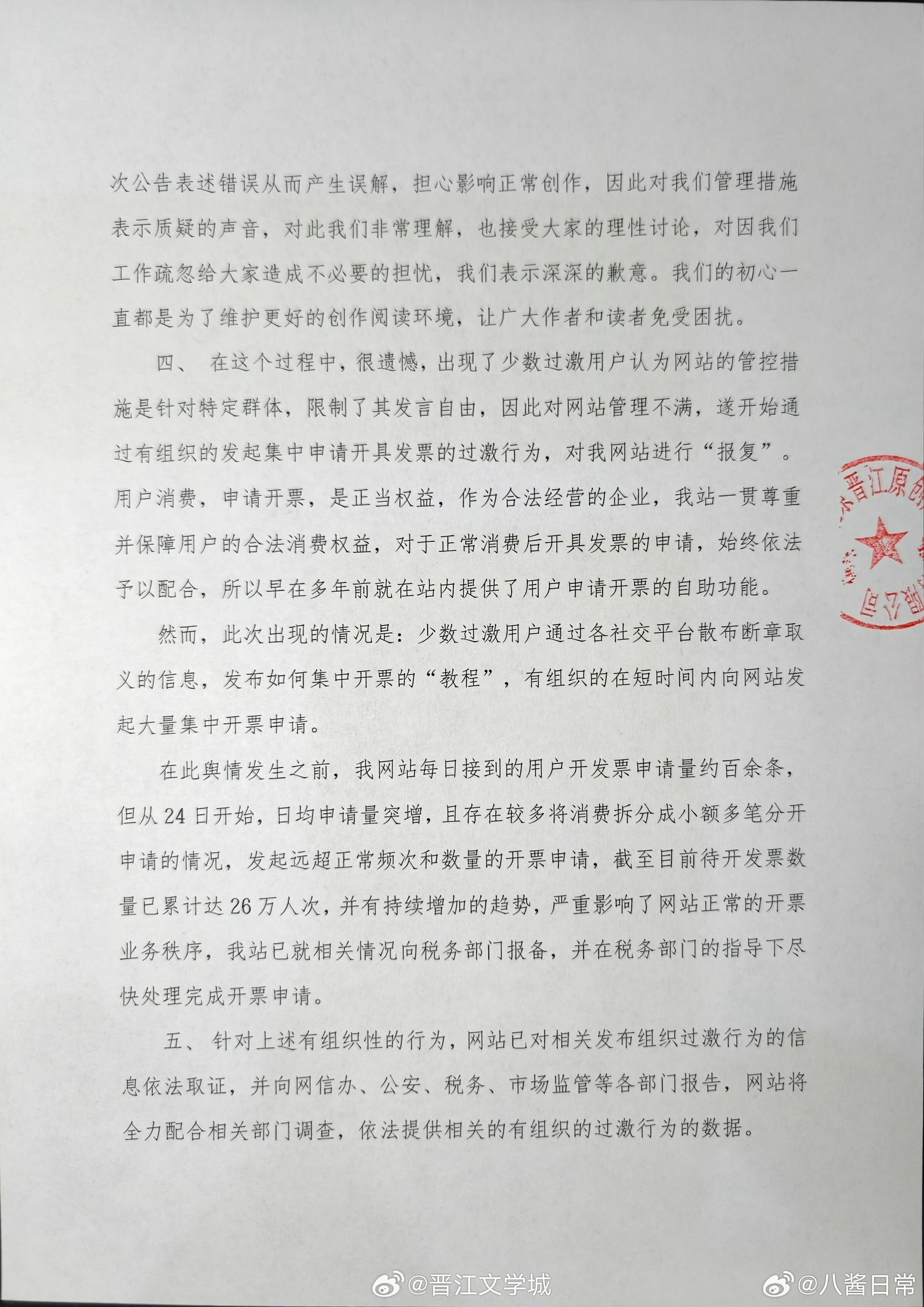 晋江回应:关于近期晋江文学城遭遇部分过激行为的情况说明 晋江发情况说明