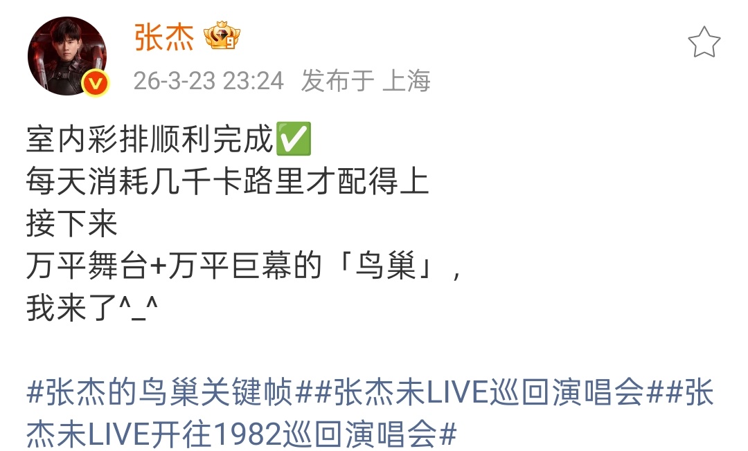张杰鸟巢观演指南 彩排图已经这么帅了,更期待演唱会现场了,更豪华的舞台、升级的歌单、还有张杰更棒的状态,牛!张杰鸟巢演唱会观演指南张杰未live巡回演唱会