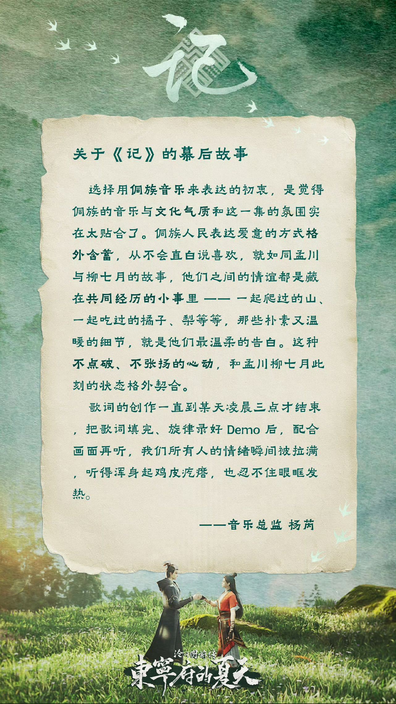 沧元图动画侗族大歌一响沧元图宿命感拉满一人安利一部动漫动漫点评团很喜欢《东宁府的夏天》选用侗族大歌配乐,堪称点睛之笔。音乐空灵多声部如山谷清风,与少年心事、夏日烟火相融,非遗天籁自带纯净氛围感,让青涩羁绊更显温柔绵长,非常有氛围感。
