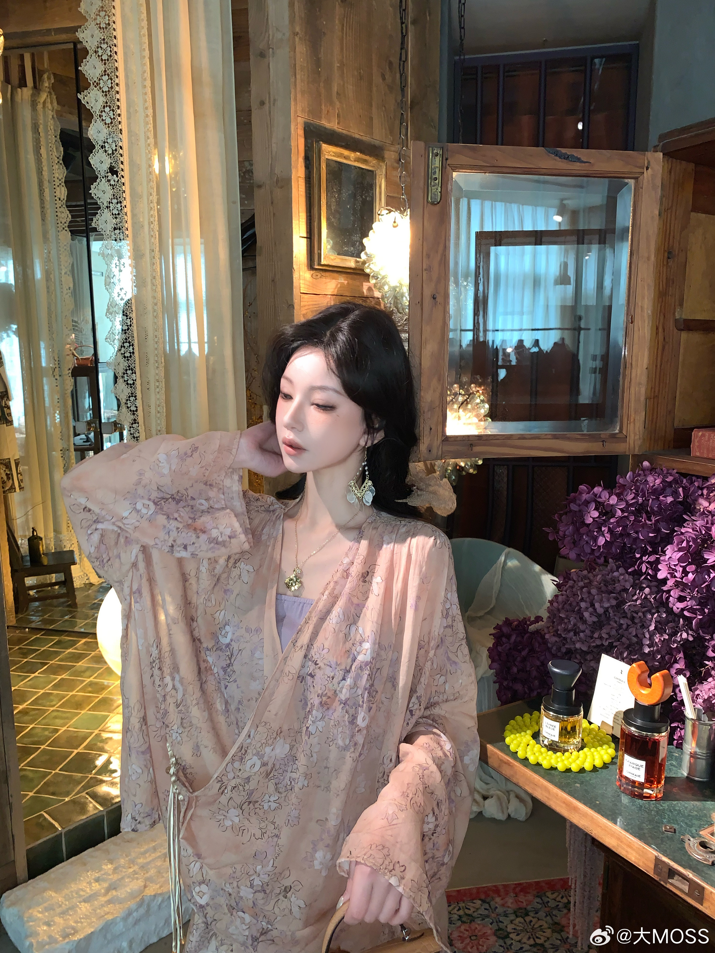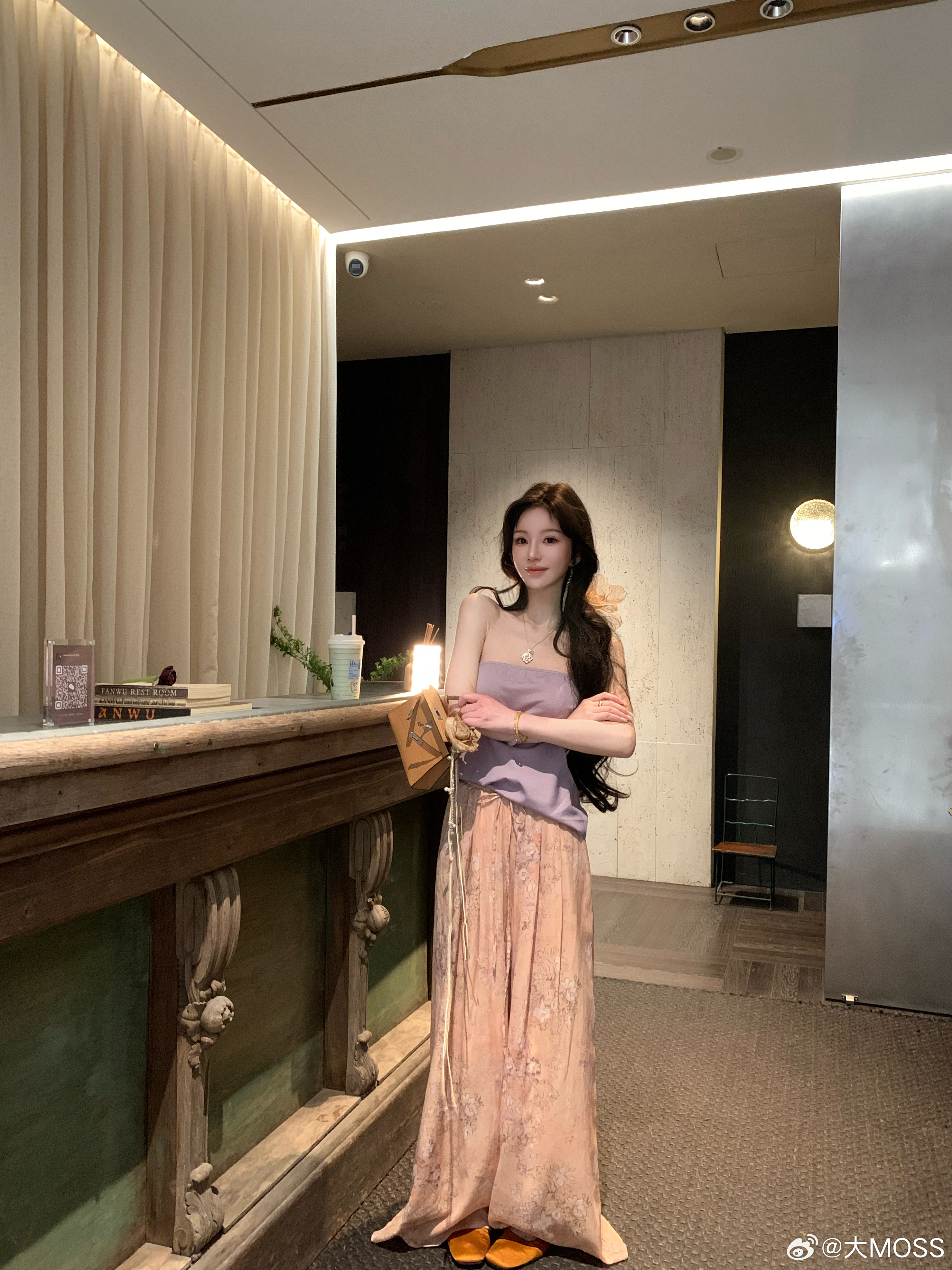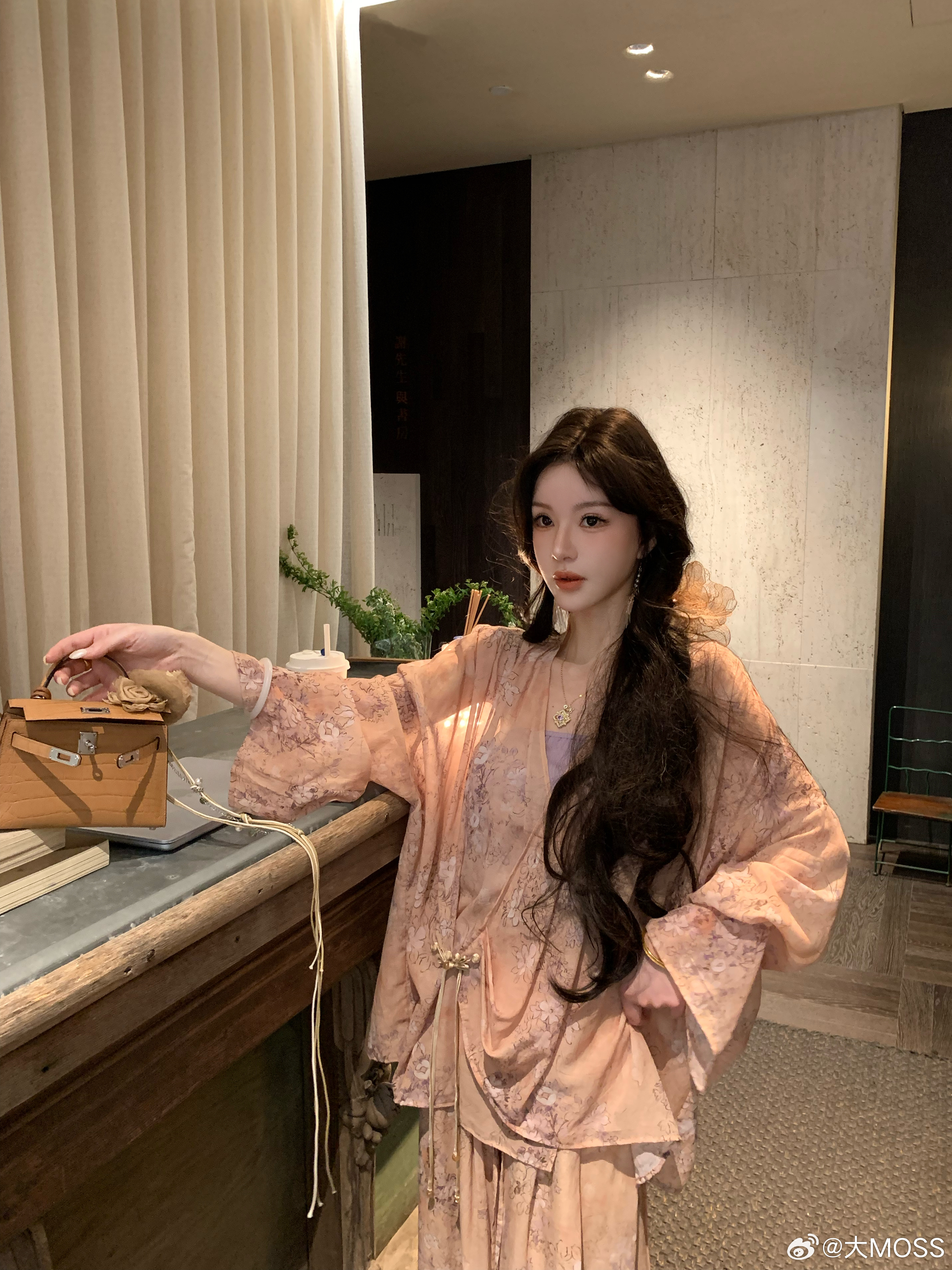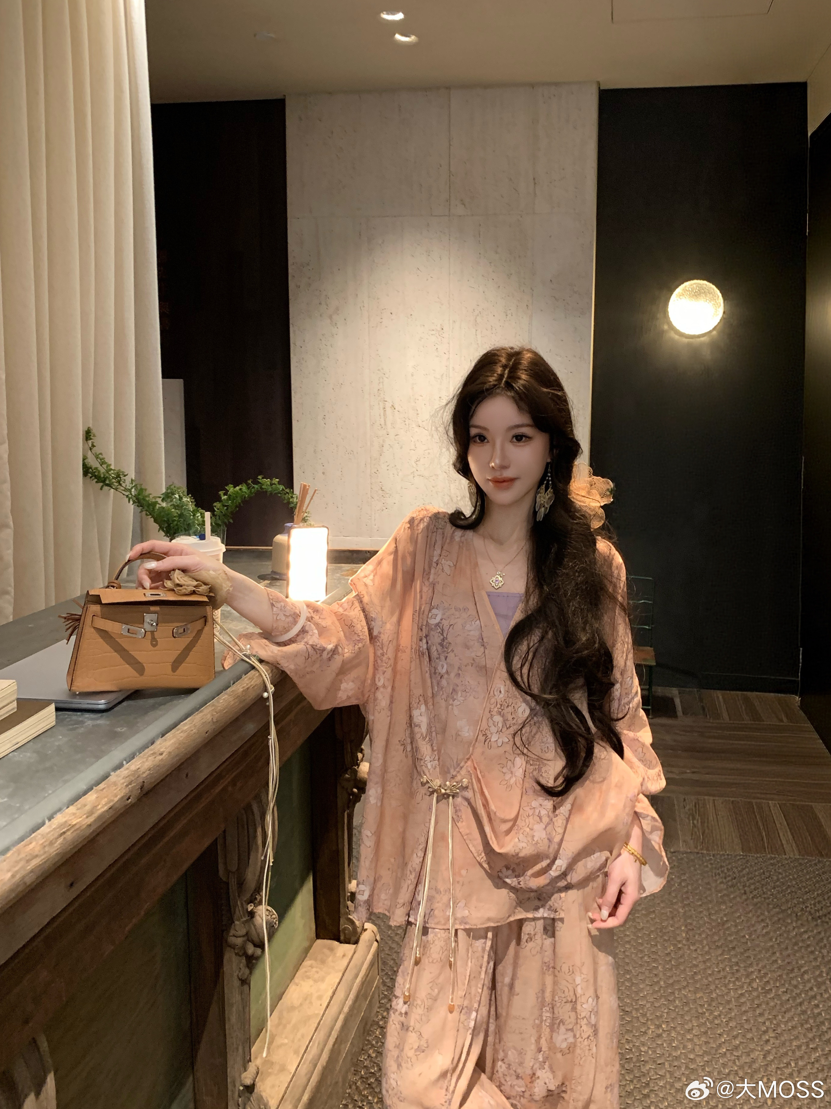 𝑴𝑶𝑺𝑺 𝟑.𝟑𝟎/𝟐𝟎:𝟎𝟎𝒑𝒎【水墨笙花】🪻🪷新中式铜氨花卉V领上衣+裤子上衣交叉 V 领罩衫以柔和的浅橘色为底色,晕染着淡紫调的朦胧碎花,自带春日氛围感。交叉围裹式门襟结合微垂褶裥,巧妙修饰腰腹线条,视觉上更显轻盈松弛。阔腿裤采用松紧腰头设计,对腰腹线条有包容度,能轻松优化身材比例👍