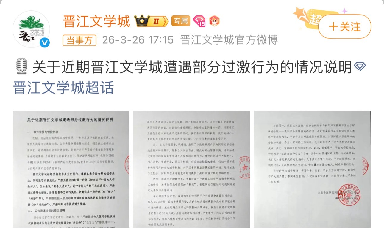晋江发情况说明 晋江:过激用户对网站不满发起开票的过激行为,是对我网站的报复。