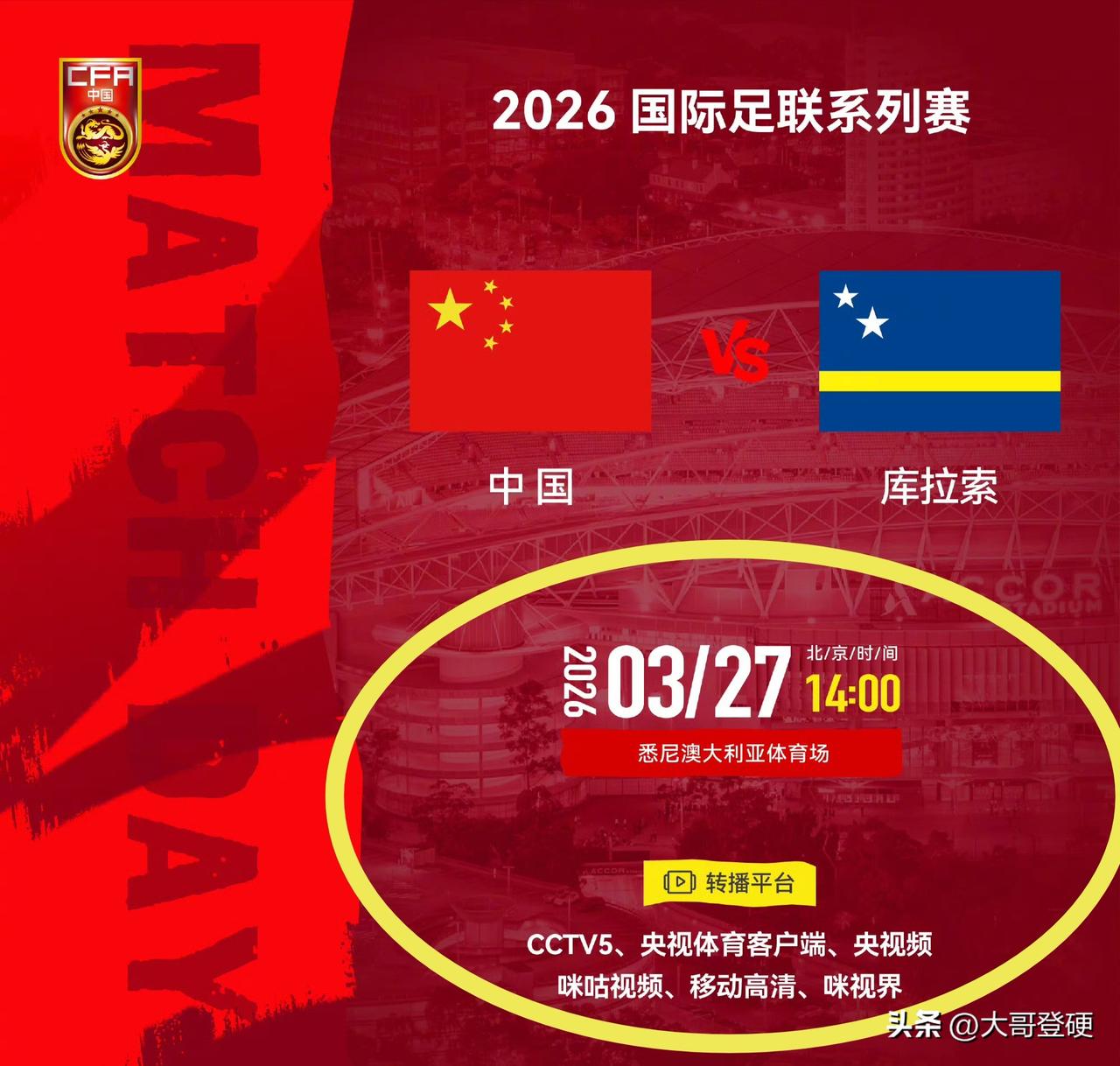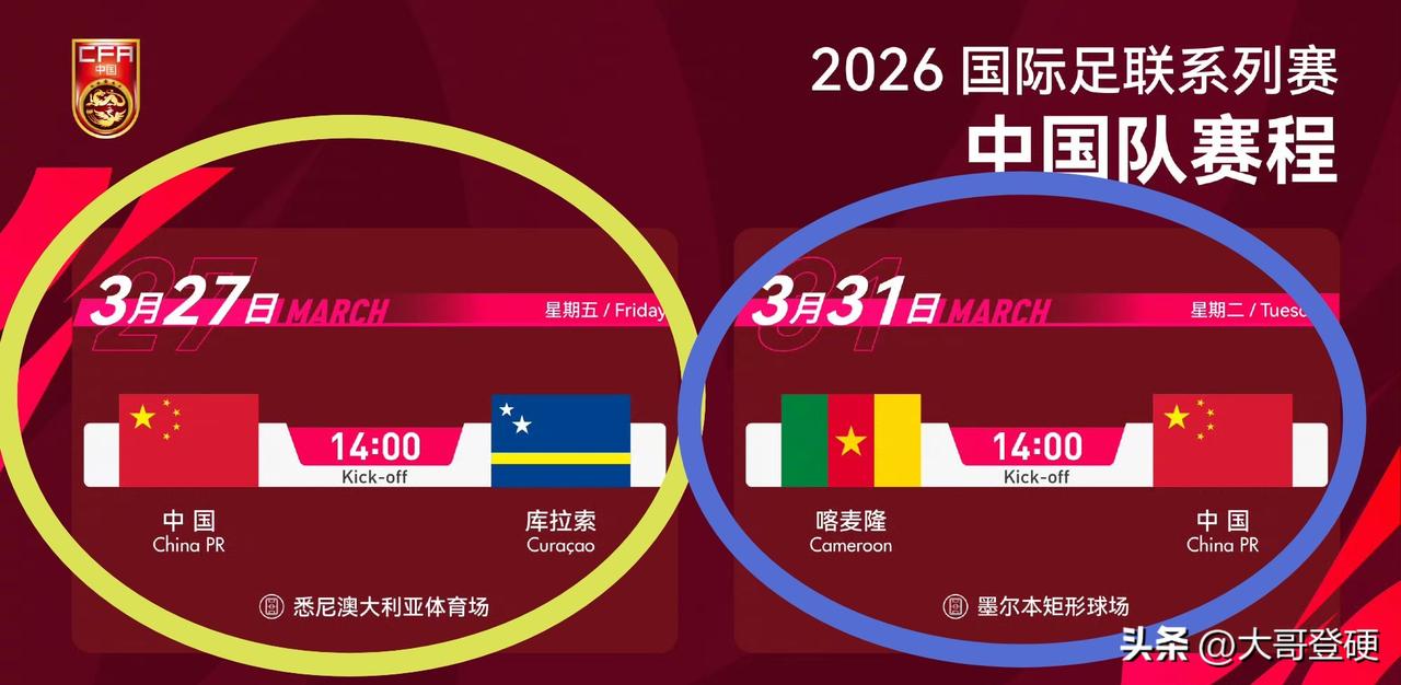 国足球迷有福了!国足在澳大利亚的两场比赛,全部免费直播⚠️ 北京时间3月26日下午,足球中国官方社媒正式宣布,目前正在澳大利亚悉尼备战的国足,明天开始将迎来两场海外系列赛,这也是邵佳一担任国足主教练的第一场正式比赛,届时CCTV5、咪咕等多个平台均为免费直播,而且还是高清信号,观看这两场比赛,只需定好闹表就行,根本不用花一分钱💰 国足这两场系列赛的具体时间为: 3月27日:国足🇨🇳对阵库拉索🇨🇼队 比赛时间:北京时间年3月27日14点整 比赛地点:悉尼澳大利亚体育场 3月31日:国足🇨🇳对阵喀麦隆队🇨🇲 比赛时间:北京时间3月31日14点整 比赛地点:墨尔本矩形球场 现在都什么年代了,哪有什么信息差可言!看国足这种比赛直播还用花钱买票?!这不让人笑掉大牙吗?有免费的高清信号可以看,还花钱买票看直播的,感觉可能是脑子没太发育好吧[泪奔]