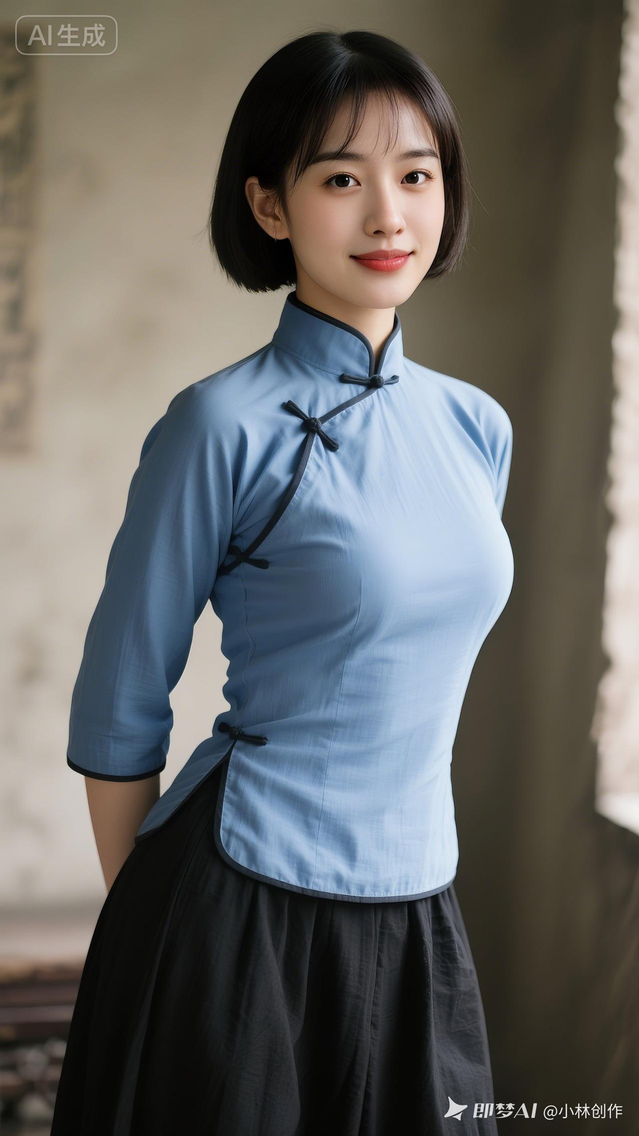复古蓝旗袍,优雅气质,尽显东方韵味!