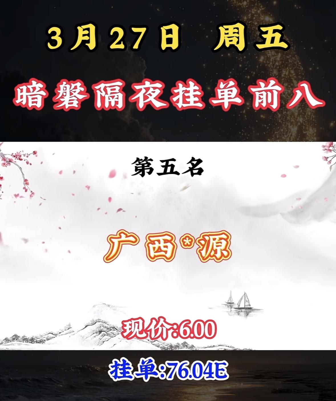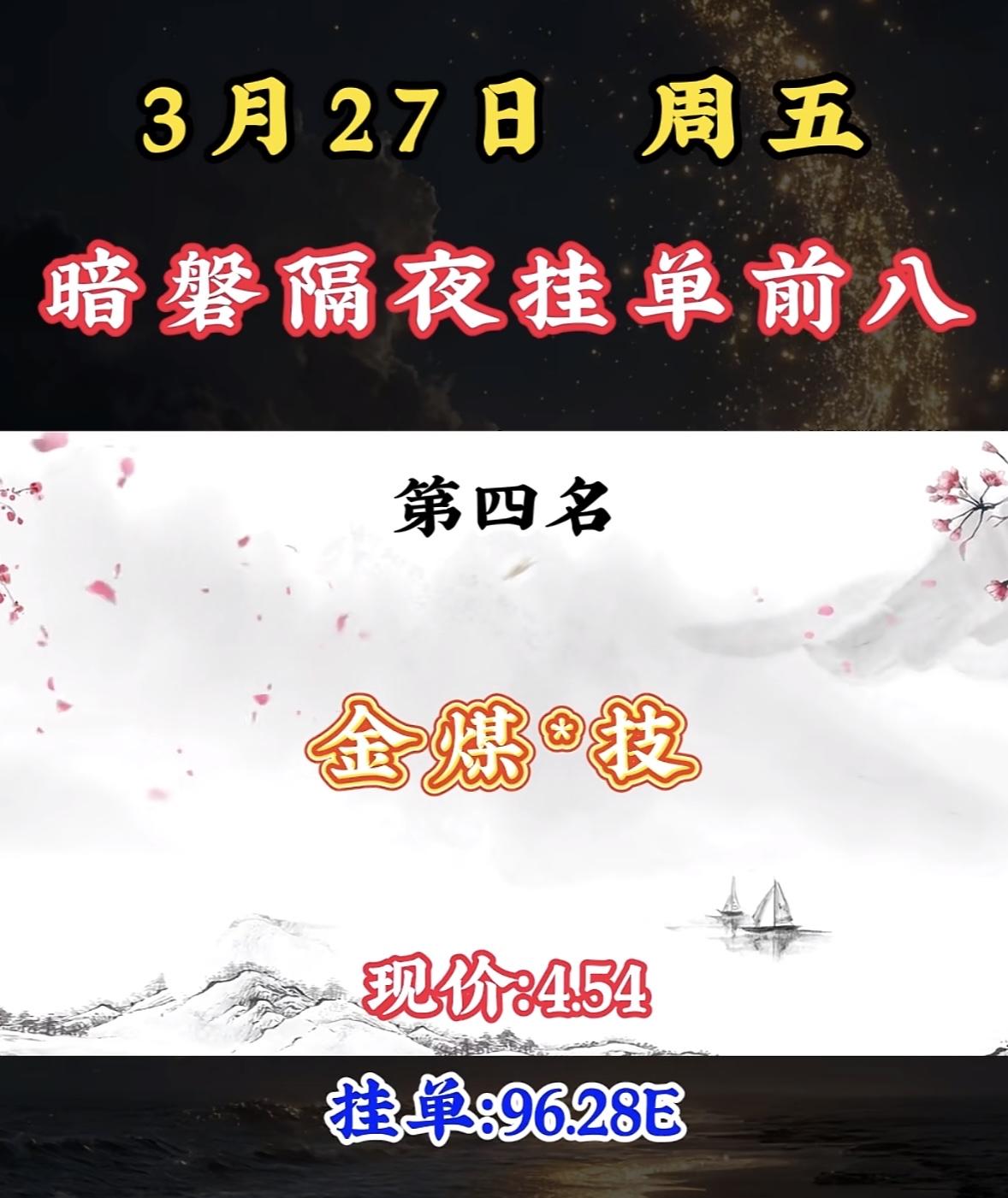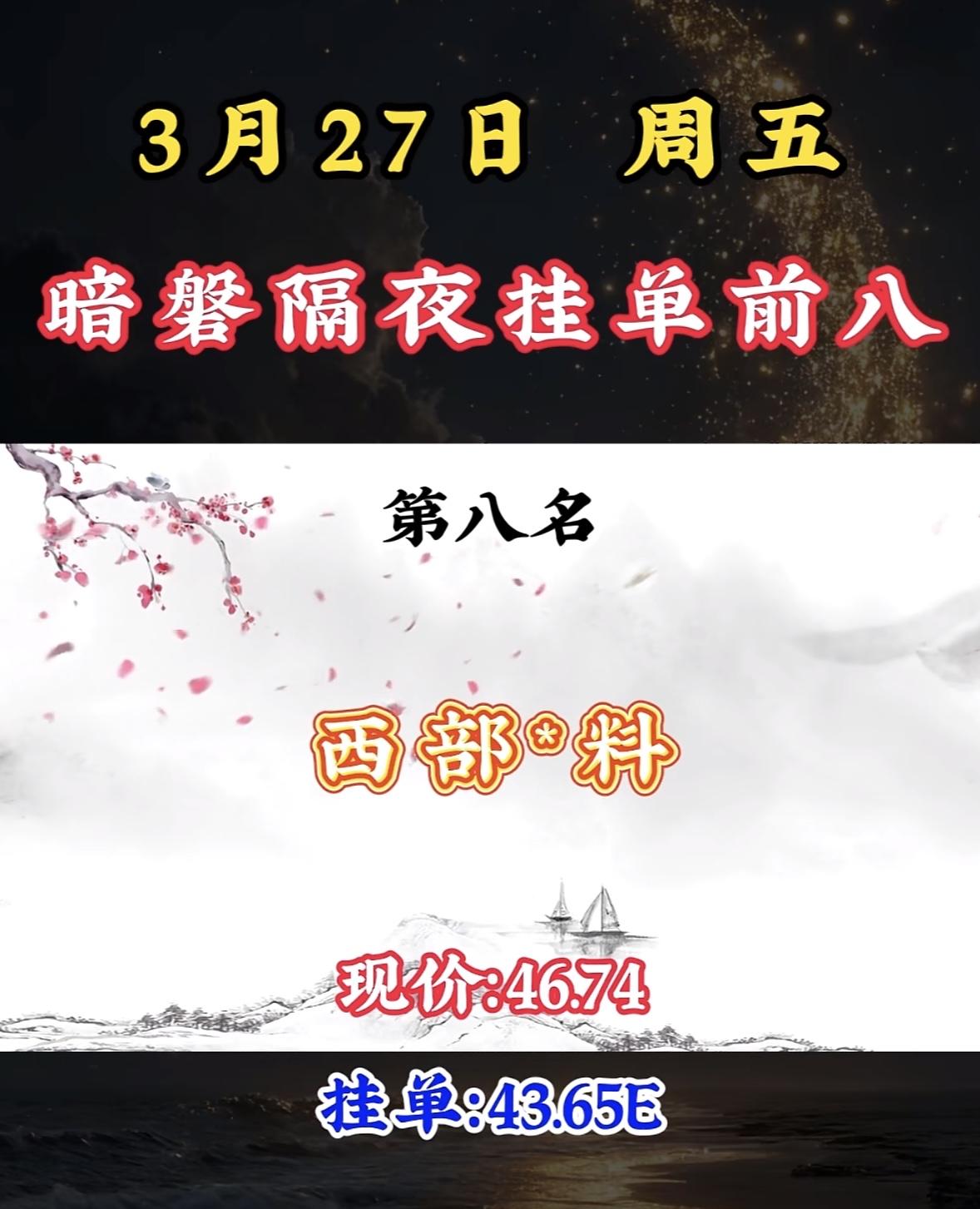 3月27日周五暗盘隔夜挂单排行榜揭晓 3月27日周五,暗盘前八里西部材料价格到