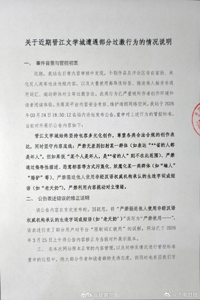 【#晋江副总裁回应屏蔽发票一词#】 26日,晋江副总裁再回应老天奶争议 :估计还有人不了解那个公告的观点。我用简单例子来说明(不保证完全准确):你自己可以用“老天奶”做表达,但不能强迫其他人(包括作者、读者)写的“老天爷”必须换成“老天奶”。欢迎大家继续做建设性讨论。