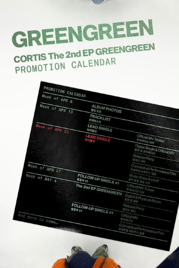 CORTIS CORTIS回归预告宣传日程公开📆4/6 专辑照片📆4/13 曲目列表 主打歌MV预告📆4/20 主打歌发行 发行纪念派对 概念表演影片 音乐节目活动开始📆4/27 后续曲MV预告📆5/4 实体专辑发行 发行纪念派对 后续曲MV 概念表演影片 Cortis回归日程表