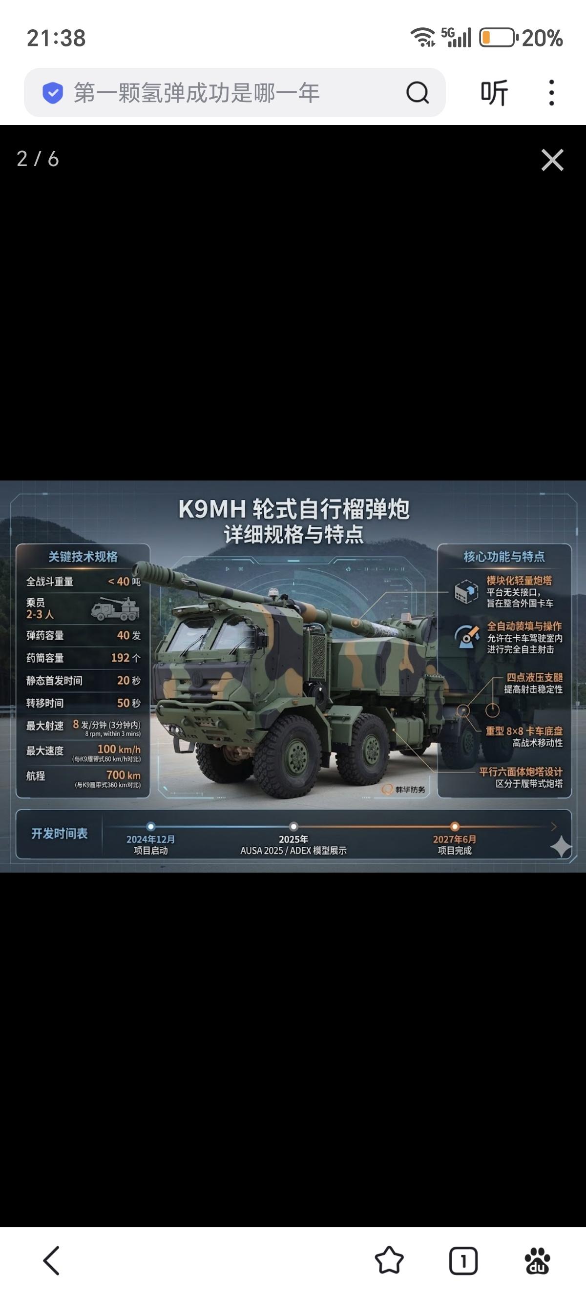 韩国韩华宇航公司 K9MH 155毫米轮式自行榴弹炮,韩华宇航正推进K9系列火炮“双路线”:一是履带式持续升级(K9A2/A3),二是重点发展的轮式K9MH,明显瞄准未来作战环境与MD三等人换代需求。K9MH采用8×8卡车+模块化炮塔方案,强调平台无关、低后勤负担和本地化生产,甚至已面向美军下一代火炮项目展开竞标与测试。 【图2】由AI生成 这一方向背后,其实直接来自俄乌战场的实战反馈。法国KNDS France的“凯撒”卡车炮在乌克兰表现突出:公开统计显示其损失数量极低(67门仅确认损失4门),显著优于部分履带式系统。 同时,其“打完就跑”的高机动战术,使其在无人机侦察和反炮兵火力环境下更难被定位和摧毁。 核心变化在于:现代战场上,无人机+精确打击已取代传统雷达反炮兵成为主要威胁,打击范围和响应速度大幅提升。在这种环境下,“生存力≈机动性”,快速转移能力成为关键指标。轮式火炮在公路机动、部署速度、维护成本等方面明显优于履带式,正好契合这一趋势。 因此,K9MH本质上是对“凯撒模式”的工业化升级版:在保持155毫米重火力的同时,通过自动装填、少人化(2–3人)和高机动,实现更强的“射击-转移”循环效率。结合美军ERCA项目受挫、正在重新评估火炮体系的背景,韩华的轮式方案很可能是冲着未来美军“中型旅火力系统”这一空缺去的。