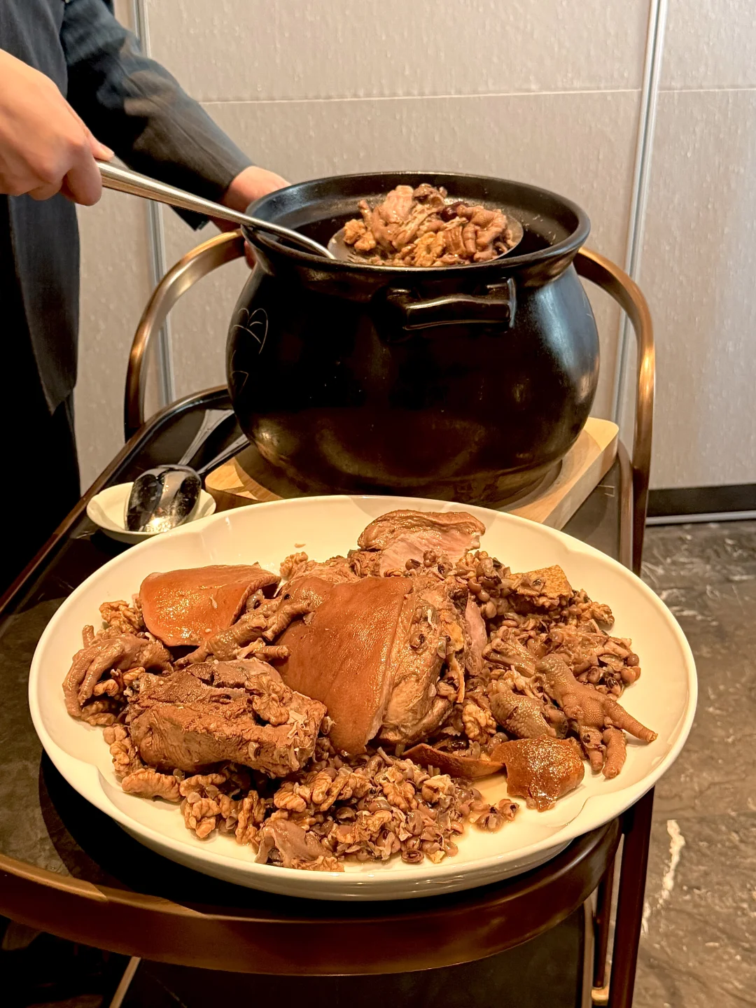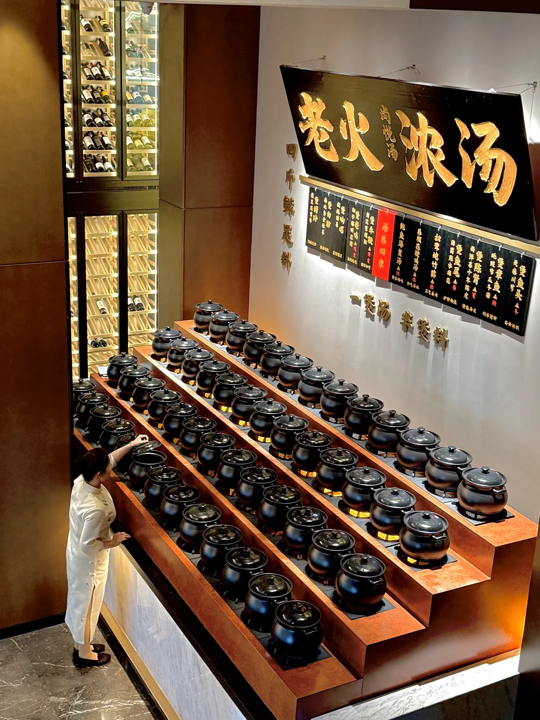 出差南京请客户吃饭,费劲找了好多家,才找到这家,直接把排面拉满💥 一整面墙的老火汤炖盅超震撼,4小时慢熬的靓汤鲜到舔碗,4斤鲜足料一煲汤ju浓郁!太滋补了!!一直被夸夸夸!!!