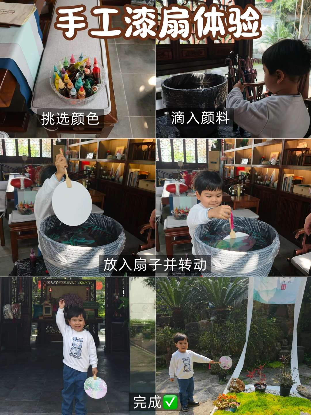 还体验了非遗手工漆扇,陪着孩子一起涂鸦上色,做出独一无二的小扇子,既有乐趣又能感受传统文化,满满的成就感。