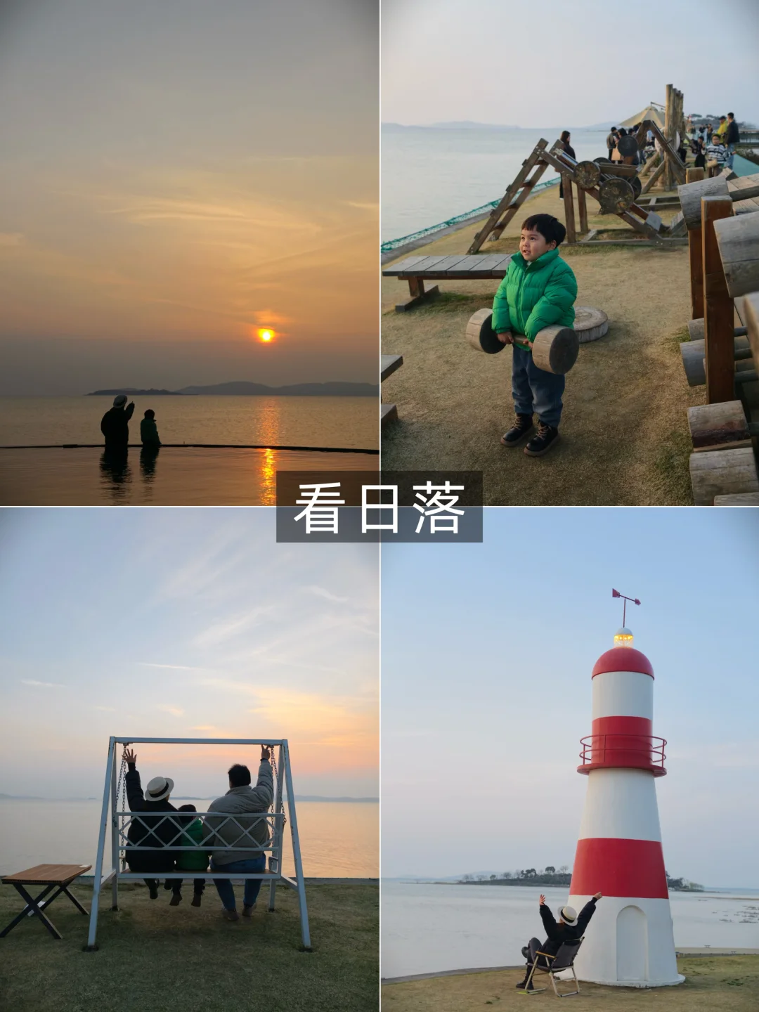 傍晚开车去附近的岱心湾大桥,打卡网红咖啡,坐在窗边看太湖日落,橘红色的晚霞铺满湖面,美得像童话,语泽跑来跑去,满眼都是好奇与欢喜。