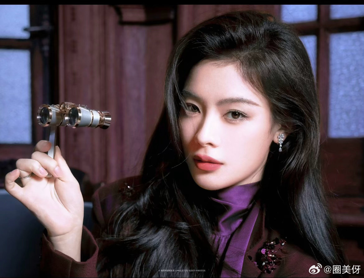 她知性优雅美丽大方,微卷中长发温婉灵动,面庞白皙精致,高挺鼻梁搭配红润唇瓣,细长