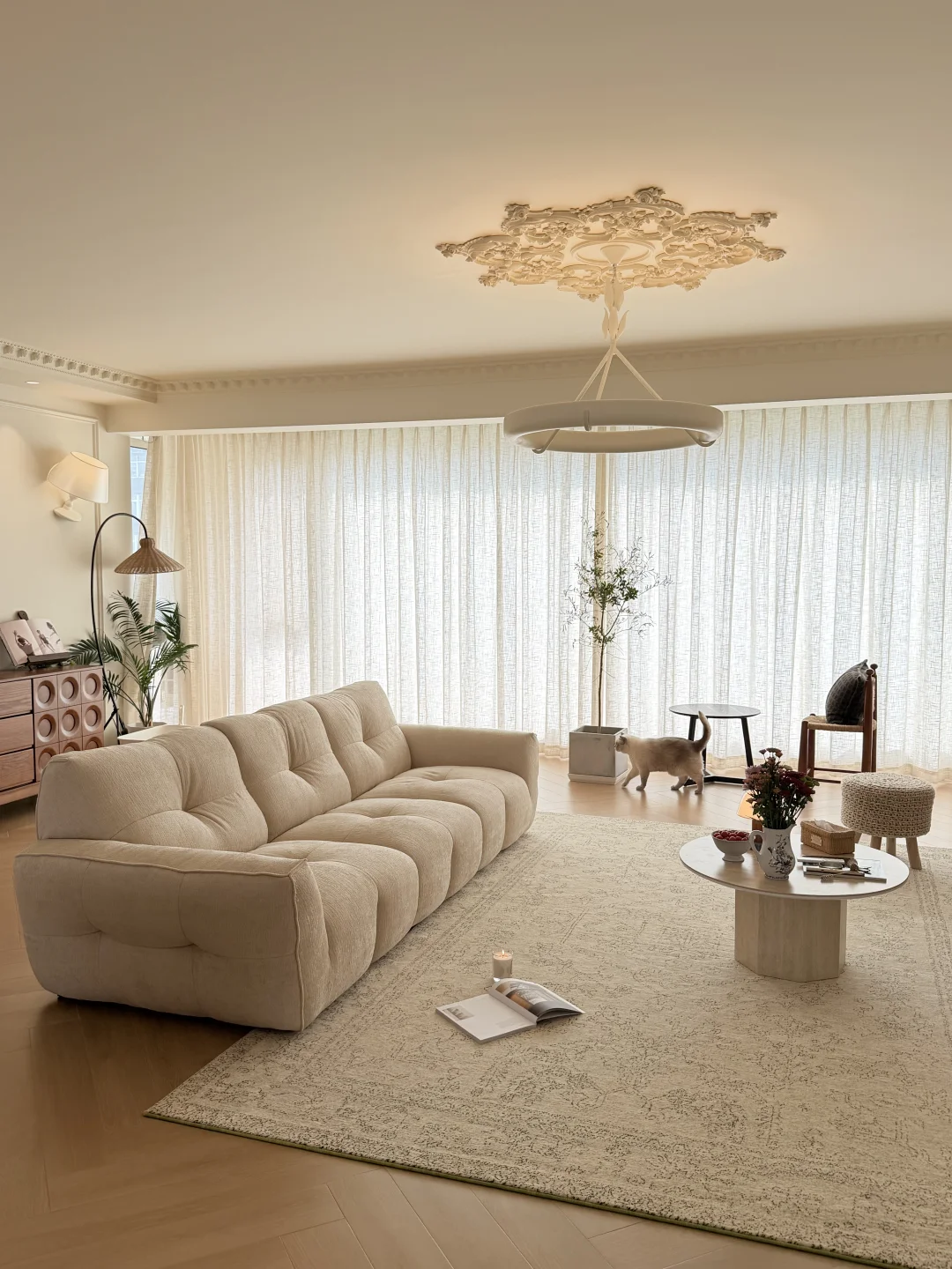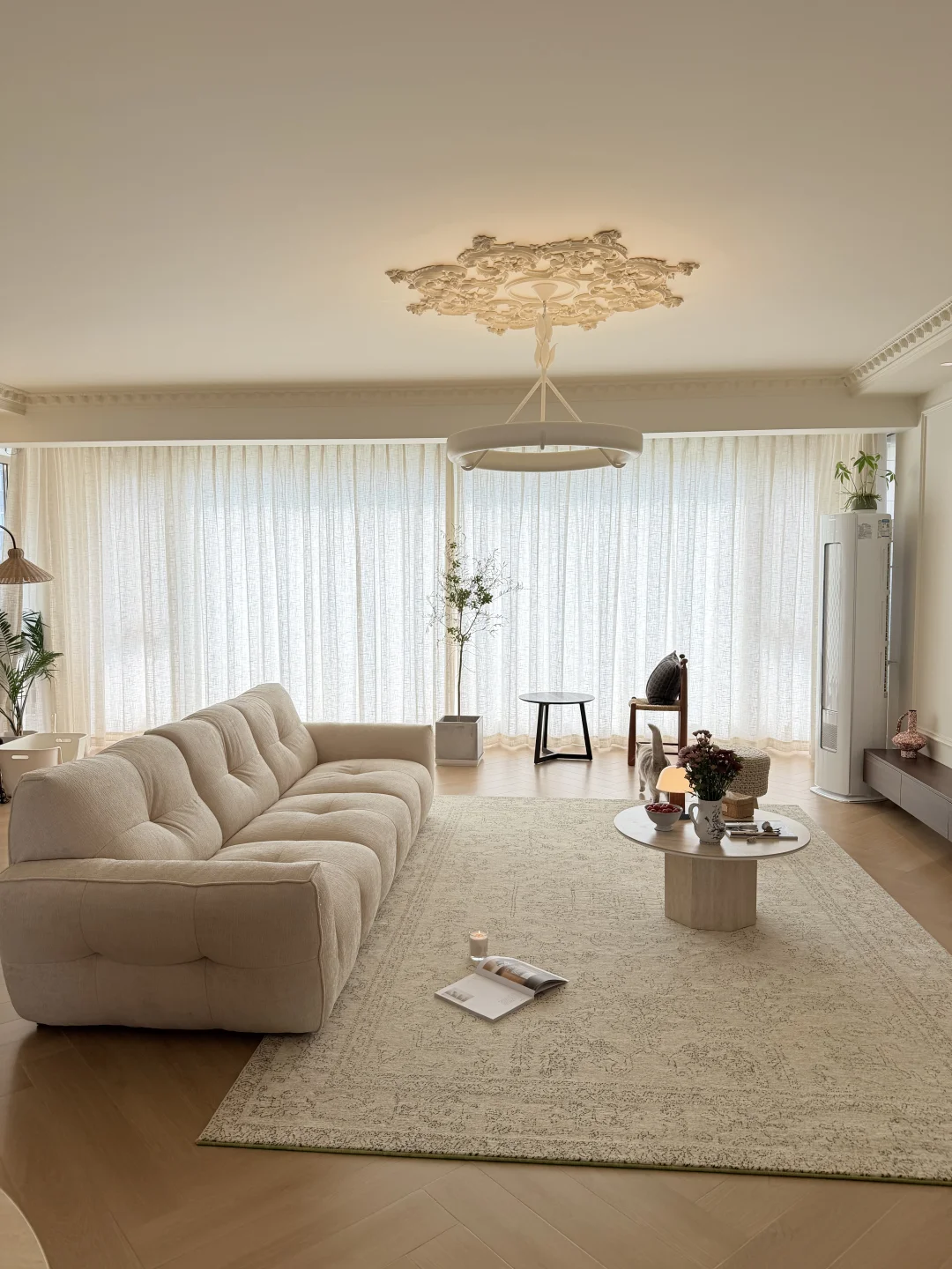 178㎡的法式平层,40w落地,没有过度堆砌的精致,只有“我舒服最重要”的松弛感。 奶白乳胶漆+人字拼木纹砖,把阳光都揉进了温柔里; 无吊顶+美丽灯具是法式浪漫的小心机,却不压层高; 连沙发都选了软乎乎的巧克力🍫,瘫在上面追剧、看书,怎么舒服怎么来。 比起“别人眼里的好看”,我更爱“我待着就开心”的家🥳 💐美丽在我家真的不值一提,舒服、自在、只属于我,才是2026最值得追的居住趋势呀~