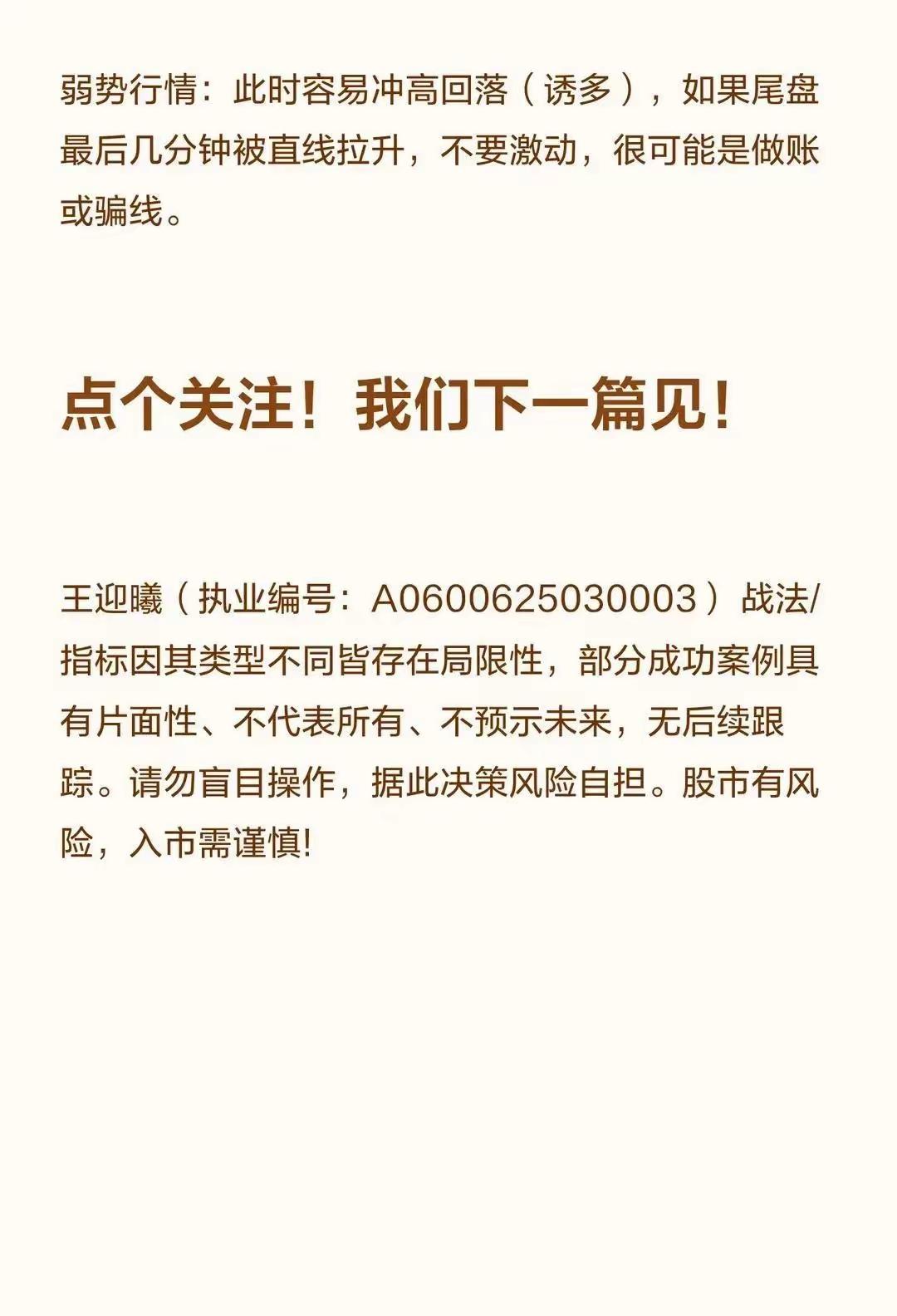 炒股的都发现没?每天4小时交易时间,70%的短线亏损全扎堆在那几个时间点!不是巧合,全是主力挖的坑,证监会数据都摆着——忽略这些节点的人,亏损率直接高30%,血的教训啊! 早上9:30-9:40,最容易被忽悠。主力故意把股价拉得贼高,看着像要涨停,散户一激动冲进去,结果人家反手就出货,钱瞬间被套。我前阵子就栽过,看着直线飙升追进去,10分钟不到就亏2个点,这坑踩得太疼。 9:50-10:10更关键,这时候最容易出短期高点。手里有赚头的赶紧抛,别贪,不然上午赚的下午全吐回去。上次我守着一只票,想着再涨涨,结果10点一过直线跳水,从赚5个点变成亏3个点,肠子都悔青了。 10:10-10:40得瞪大眼睛看盘口。主力这时候动作最明显,大单哗哗往里流,那是真要拉;要是横盘不动,哪怕看着红的也别碰,大概率是弱震荡,进去就是耗时间。 午盘11:10-11:30更缺德,主力喜欢这时候急拉,看着特强势,其实就是诱多。上次追了个午盘急拉的,吃完午饭回来直接跌懵,一天白干。 下午13:00-13:30也别掉以轻心,开盘那下波动贼大,要么是诱你接盘,要么是真砸出低点。我朋友上次就在这时候抄到底,一天赚了8个点,羡慕坏了。 14:00-14:30是定调子的关键。这时候要是跌下去,全天基本就凉了;要是资金突然抢筹,第二天大概率有戏。上次盯着一只票,2点多突然放量上涨,赶紧跟进去,第二天真就高开,总算回了口血。 尾盘14:30-15:00更要稳。好多票最后半小时冲高,看着漂亮,其实是主力做账面好看,第二天一开盘就砸,追进去准被套。 说白了,这些时间点全是主力和散户的心理战。别不信邪,遵守纪律比啥都强。该抛就抛,别贪;该等就等,别慌。把这些节点摸透了,至少能少亏一半!你们是不是也在这些时间点栽过?评论区说说,让大家避避坑!