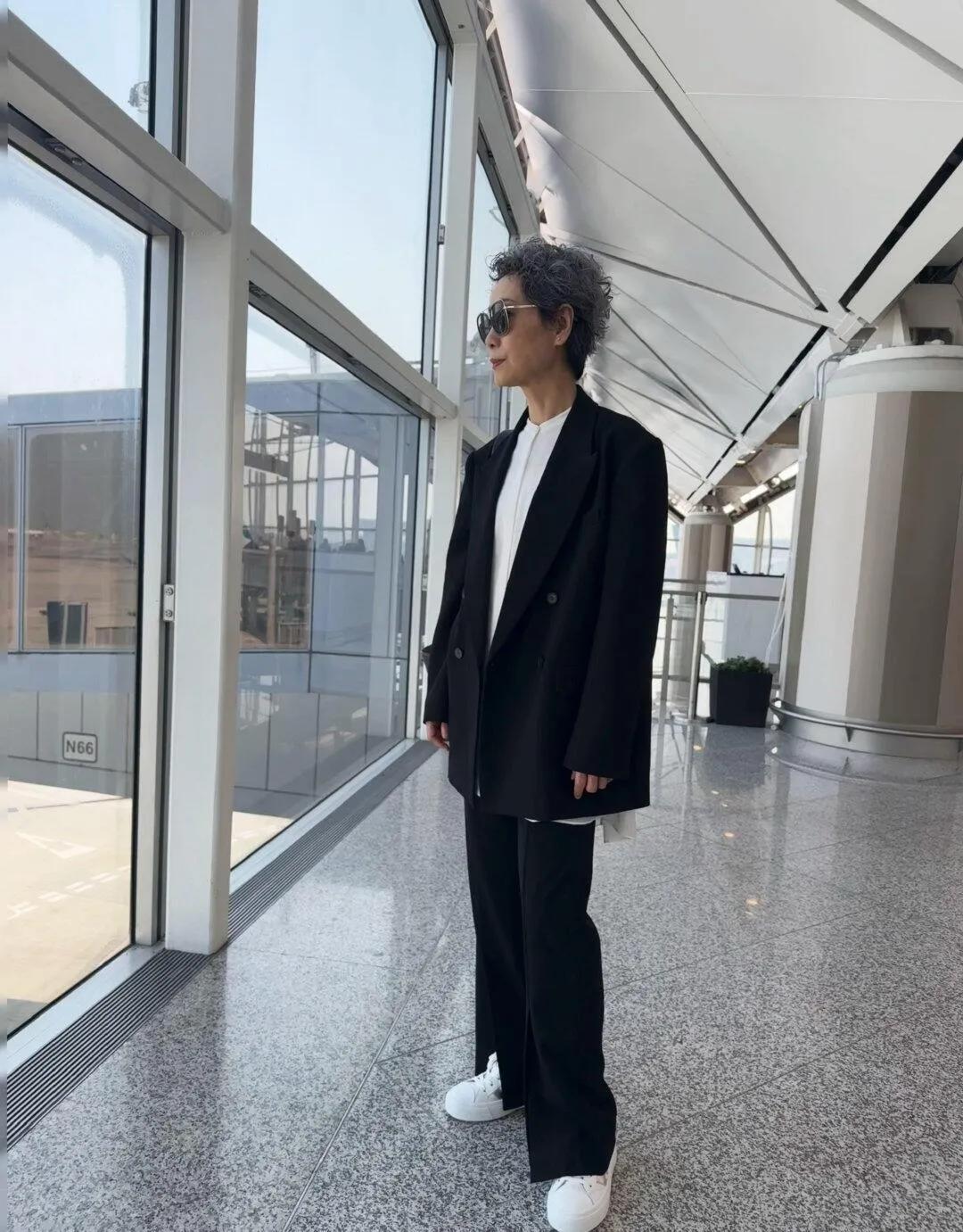谁能想到叶童已经60+了!银灰色羊毛卷短发直接把年龄感焊死在20岁,黑西装+白衬衫的经典搭配,干练又飒爽,走路带风的气场,完全看不出岁月痕迹,这才是真正的优雅老去! 叶童 逆龄穿搭 短发yyds 高级感