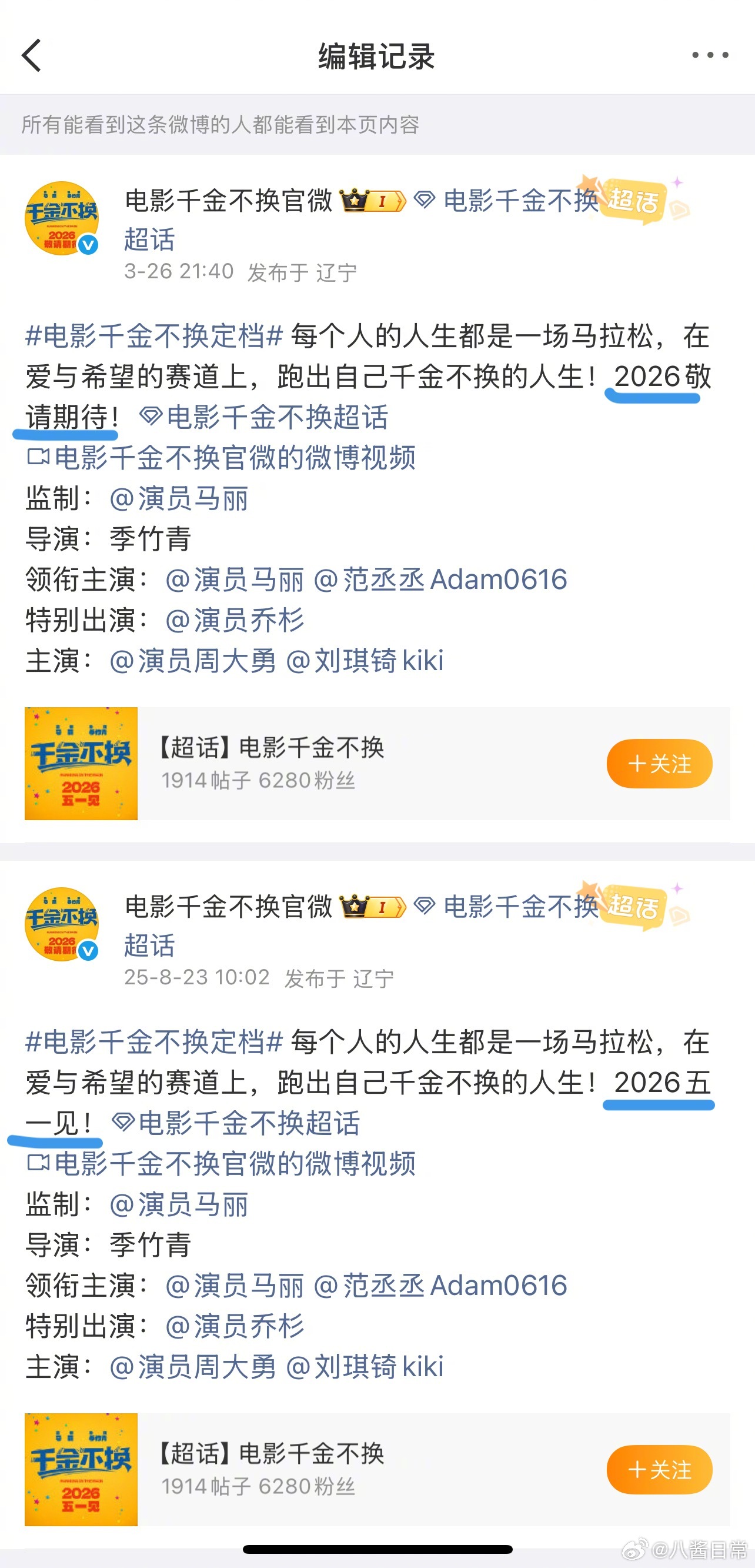 马丽、范丞丞主演电影《千金不换》撤档,退出今年五一档 千金不换 撤档