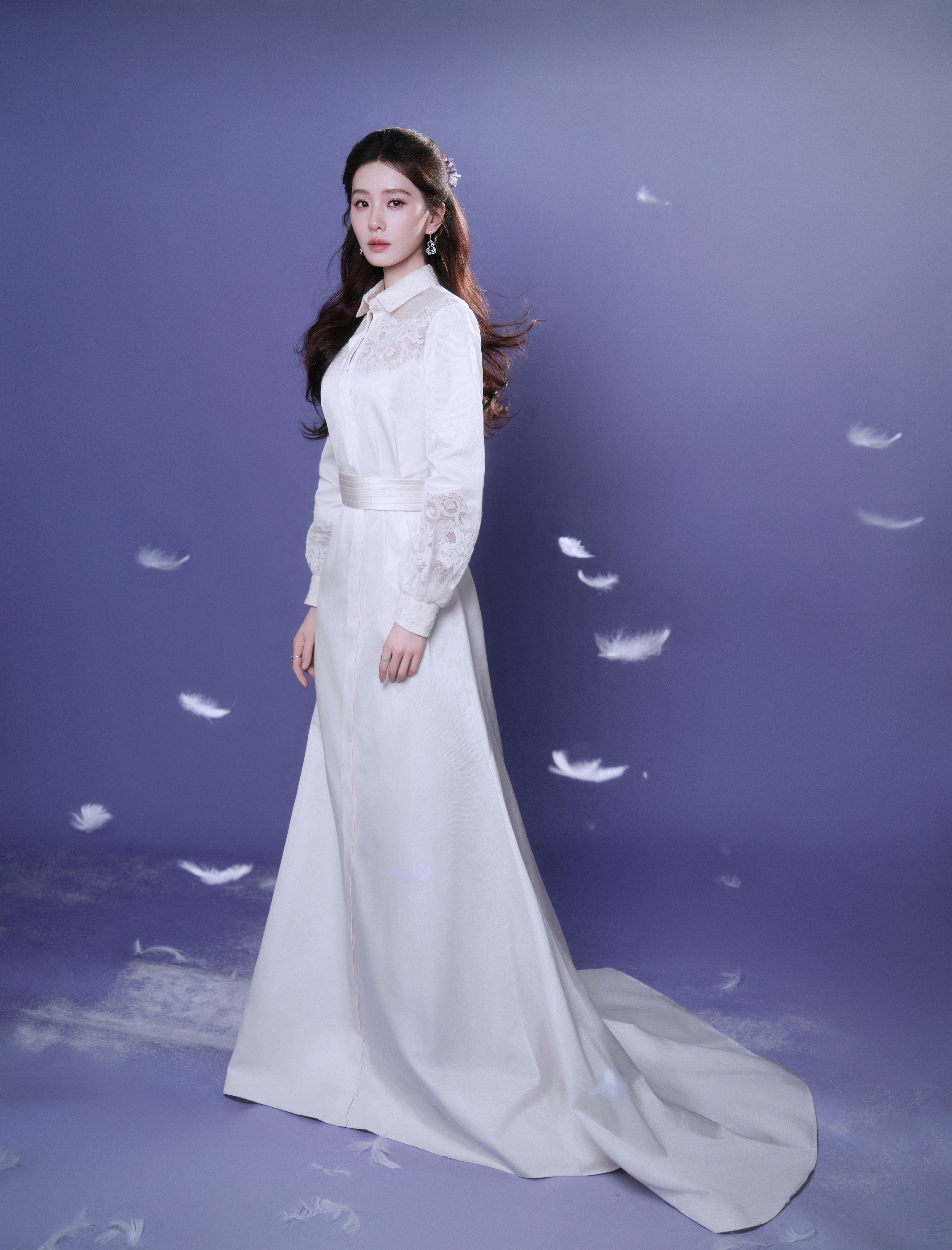 今日诗诗以一袭 Alexis Mabille 纯白蕾丝拖尾高定裙亮相代言活动现场 ,衬衫式翻领融合精致蕾丝 ,利落中藏着细腻浪漫 ;缎面垂坠裙摆则随步履轻扬 ,再搭配散落长发 ,宛如月下仙子般的清冷 、温柔氛围就这样轻松拿捏 !气质这块 姐就是权威代表 !🤍