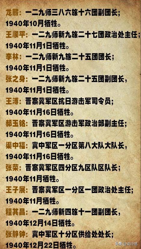 百团大战中壮烈牺牲的27位高级将领一览! 很多人一提百团大战,脑子里先蹦出来的,是铁轨被撬开、桥梁被炸断、据点被端掉,像一连串很响的动静。真要把那层热闹拨开,里面其实有点发沉。 那不是一场只看战果数字就能说清的仗,它长,硬,磨人,还带着一股血气。打一开始,八路军盯上的就不是几处零碎目标,而是日军在华北赖着活命的那张交通网。 路一断,点一拔,敌人的腿脚就先乱了。 一九四零年夏秋,日本在中国战场上越逼越紧。欧洲那边打得乌烟瘴气,美国还没完全准备好,英国顾不过东边,日本就打起了别的算盘,想把中国变成它继续往南折腾的后方。华北这一带,更是被它下了重手,修铁路,修公路,添碉堡,增据点,搞出一套“铁路为柱,公路为链,碉堡为锁”的东西,摆明了就是要把根据地一圈圈勒死。说得直白点,就是拿钢筋铁骨织个笼子,把抗日军民困在里头慢慢磨。 八路军总部看得很清楚,这口气不能咽。光挨打不成,得狠狠干回去。参战的队伍也不是东一榔头西一棒子,晋察冀军区、第一二〇师、第一二九师,还有山西新军,一共一百零五个团,二十多万人,再加上民兵和老百姓一块上阵,场面一下就铺开了。百团大战这个名字,也就是这么叫起来的。 这场仗从一九四零年八月二十日打到一九四一年一月二十四日,拖了五个多月,分成三段。头一段,目标很准,就冲着交通线和沿线据点去。正太铁路是要害,平汉、同蒲这些线也没落下。部队、游击队、民兵配合着来,路轨能拆就拆,桥梁能炸就炸,隧道、车站、通信设施一并收拾。不是瞎抡拳头,是有章法的,破路跟作战拧在一起,袭击和围困一道上。那股劲儿上来,华北日军的交通线很快就不顺气了。阳泉那边的狮脑山,娘子关这些卡脖子的地方,被一处处拿下,井陉煤矿也被破坏得厉害,停产停了半年。半年,这不是挠痒痒,这是把敌人一块肉生生撕下来了。 中间那一段,劲头没松,胃口还更大了。光破交通线已经不够,还要把两侧的据点一片片拔掉,把那些伸进根据地里的钉子敲出来。日伪据点连续被攻克,封锁沟、封锁墙也被平掉不少。很多原本被切得七零八落的根据地,又慢慢接起来了。这个事看着不如炸桥炸路热闹,分量却不轻。地盘连成片,部队能走,群众能通,气也顺了,仗才打得下去。 到一九四零年十月初,日军急眼了,开始大举报复“扫荡”。这时候的仗,味道就更苦了。它不是站着狠狠干一阵就完,而是要在敌人的火里熬。日军烧杀抢掠,推行“三光”,根据地被折腾得很惨。可八路军没被它拖死。总部统一指挥,地方武装和群众在后头死死托着,主力部队在前头跟敌人绕、缠、打,袭扰、诱敌、伏击、围困,法子轮着上,不让日军舒舒服服按着自己的路数来。打到末了,敌人还是得往后缩,被占的城镇也收了回来。 这场仗到底打成什么样,有几组数字,很硬,不用添油加醋。大小战斗两千次以上,毙伤日伪军二万五千余人,攻克据点二千九百九十三处,破坏铁路四百七十四公里,破坏公路一千五百零二公里。这样的数字摆出来,谁都知道不是做样子。日军华北方面军司令部把它叫“挖心战”,这个词倒真没说错。打交通,打生产,打机动,打封锁,刀刀都往心口去。连多田骏都因“囚笼政策”失败被撤职,可见这一拳打得有多疼。 还有一点,绕不过去。百团大战不是光把日军打疼了,也把那些“八路军游而不击”的鬼话打碎了。那阵子,国民党里头不是没有妥协气味,有些人嘴上喊抗战,心里还在掂量别的算盘。百团大战这么一打,仗打得长,区域铺得大,兵力投得足,谁还好意思装看不见?敌后不是没人打,恰恰是有人在死扛。那口撑着全国人心的气,不少就是从华北敌后顶出来的。 真说到让人心里发紧的,还不是这些数字,是那些倒下的人。彭德怀把个人安危丢在一边,硬是在前线指挥。范子侠那句“我前进,你们跟着我;我停止,你们推动我;我后退,你们枪毙我”,听着像刀子磕在石头上,直愣愣的,没半点虚劲。董天知、谢家庆、吴隆著、李林、王顺平,这些名字一出来,纸面都沉了。他们不是挂在墙上的符号,是实打实死在战场上的干部。百团大战里,八路军伤亡一万七千余人,这个代价,说轻松是没良心的。 更别提那些老百姓。河北行唐县三千余名民兵,正定县一千余名民兵,还有新乐民兵,配合部队去破坏平汉路正定到新乐一段铁路,还两次炸毁沙河大桥。有人忍着饿,白天藏着,夜里摸着黑送粮食、送弹药、送军鞋。寿阳景上村自卫队员王蝉余等三人,在火线上抢救伤员,第一个倒了,第二个又倒了,第三个还得往上扑。这样的事,不是一桩两桩。百团大战能打赢,说到底,不只是枪杆子硬,也是后头那一双双手没松开。 所以再看这场仗,不能只盯着“百团”两个字响不响,也不能只记得铁路断了多少、公路毁了多少。它厉害就厉害在,前线敢拼,后方敢撑,干部往前压,群众往前送,硬是在日军的封锁网里撕开了一道口子。那口子一开,华北的风就不一样了,硝烟里的人影也就更清楚了。 那些名字有的留了下来,隔了这么多年,再念出来,还是烫。