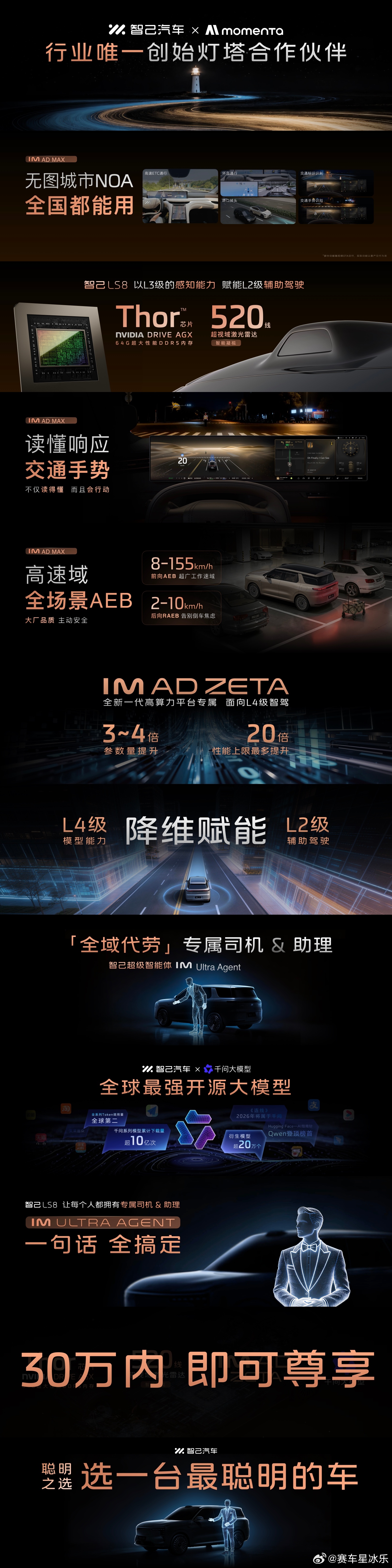 智己LS8震撼预售25.98万元起不得不说,8系SUV市场已经出现了"断裂带"智己LS8把价格拉到了25-30万级别,同时这个级别还有35-50的一批车型。这次智己的定价足够低,会让人思考其他品牌那十万的溢价,能否支撑起品牌或者某几项功能的溢价。能20多万买到大型SUV,还该有的配置都有,去年是想不到的。虽然线控转向很先进,但我觉得花一万选配的人不会太多,因为L3还需要算力,流程上的支持。但除此之外,这回sku其实比LS6要简单些,我是觉得52度电的足够。