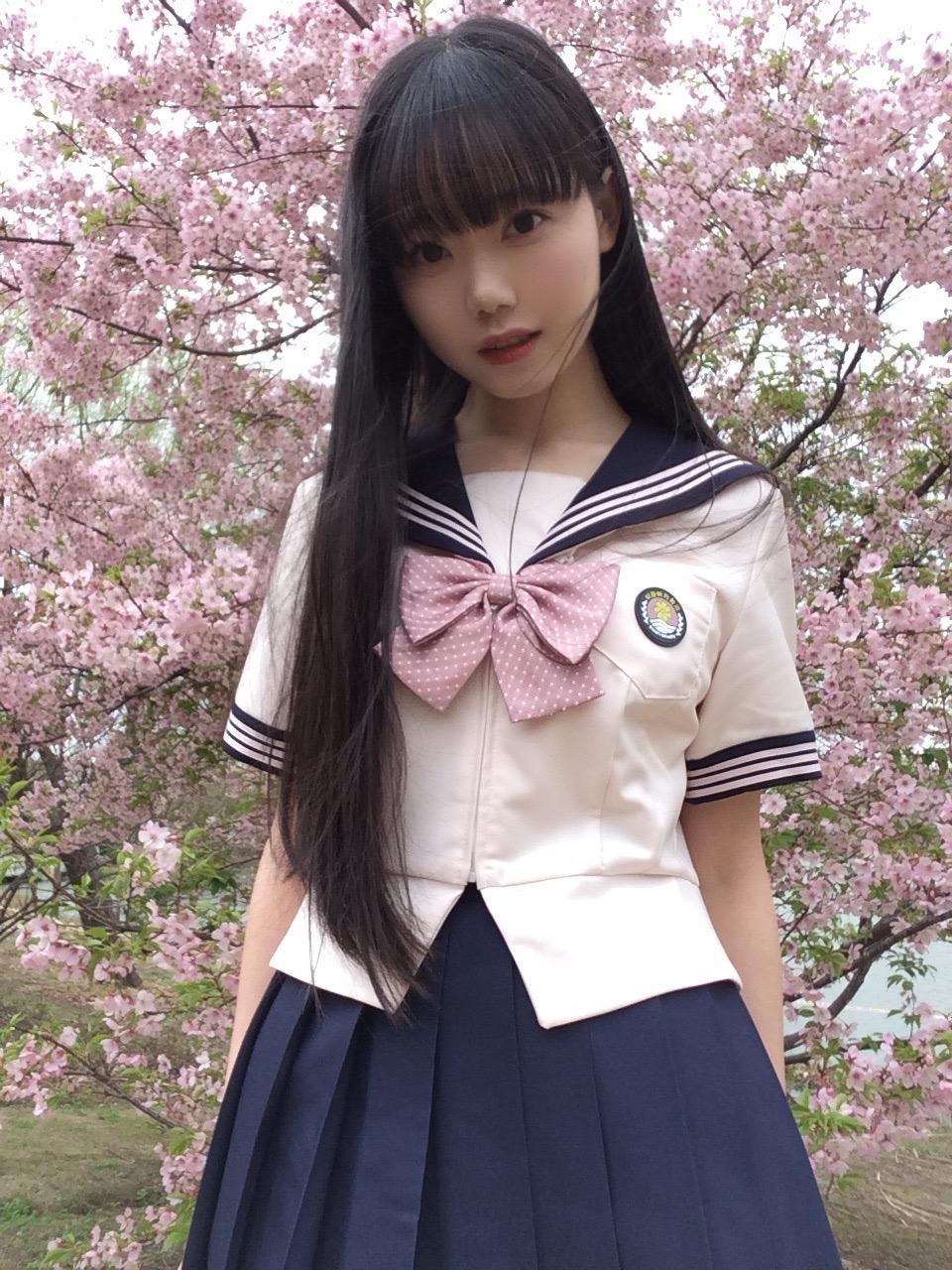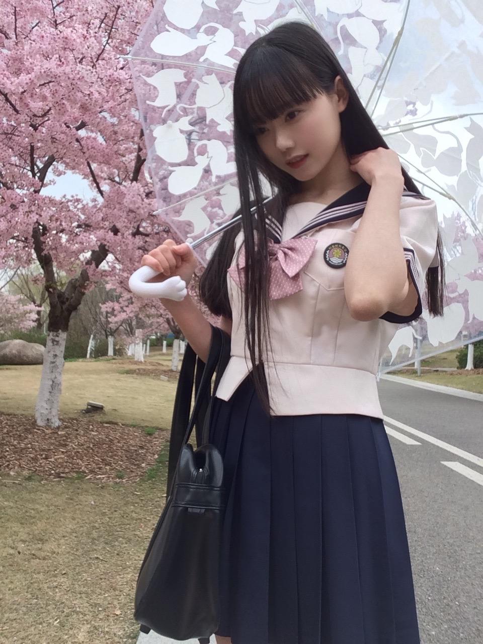 樱花树下,温柔少女,静享春日时光